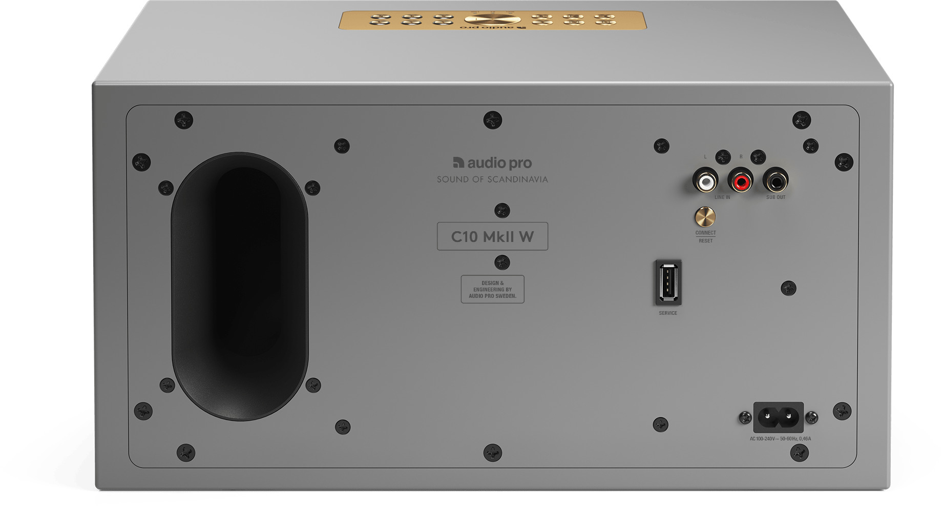 - Grâce à la façade en tissu amovible, vous pouvez décider du design qui convient le mieux à votre pièce. Grâce à la fixation facile par des aimants invisibles, vous pouvez choisir le design en un clin d'œil. Le C10 MkII W est disponible en trois couleurs élégantes : noir, blanc et gris. Il se distingue par son design scandinave et minimaliste qui a fait la réputation d'Audio Pro.