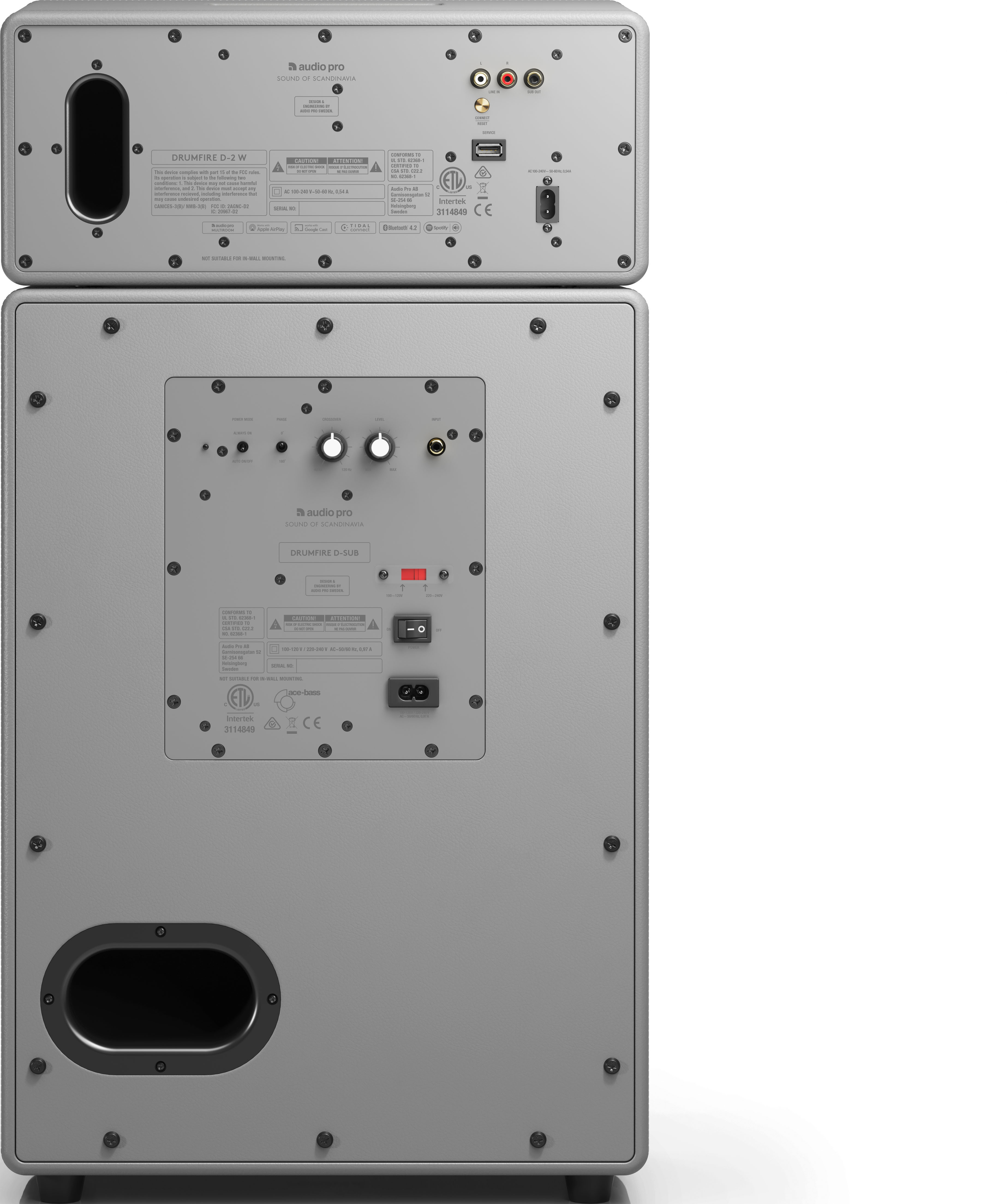Parfois, rien ne vaut le fort. Drumfire II W délivre un son pur et puissant avec des détails cristallins. Vous ressentirez chaque détail de votre musique. Mais le volume n'est pas tout : même à faible volume, Drumfire II W donne vie à votre musique. Drumfire II W est la nouvelle version améliorée de Drumfire II. Il offre une écoute multiroom via une application basée sur la dernière technologie Linkplay, ainsi que la possibilité d'utiliser Google Cast, AirPlay 2, Spotify Connect et Tidal Connect et d'obtenir un son encore meilleur que son prédécesseur Drumfire II. Le firmware du haut-parleur et la nouvelle application Audio Pro, tous deux soutenus par Linkplay, offrent une synchronisation EQ et WLAN ainsi qu'un accès à un grand nombre de services de streaming. Les deux sont régulièrement mis à jour : L'application via l'App Store de votre appareil mobile, tandis que les mises à jour du micrologiciel sont automatiquement gérées sans fil directement par le haut-parleur.
