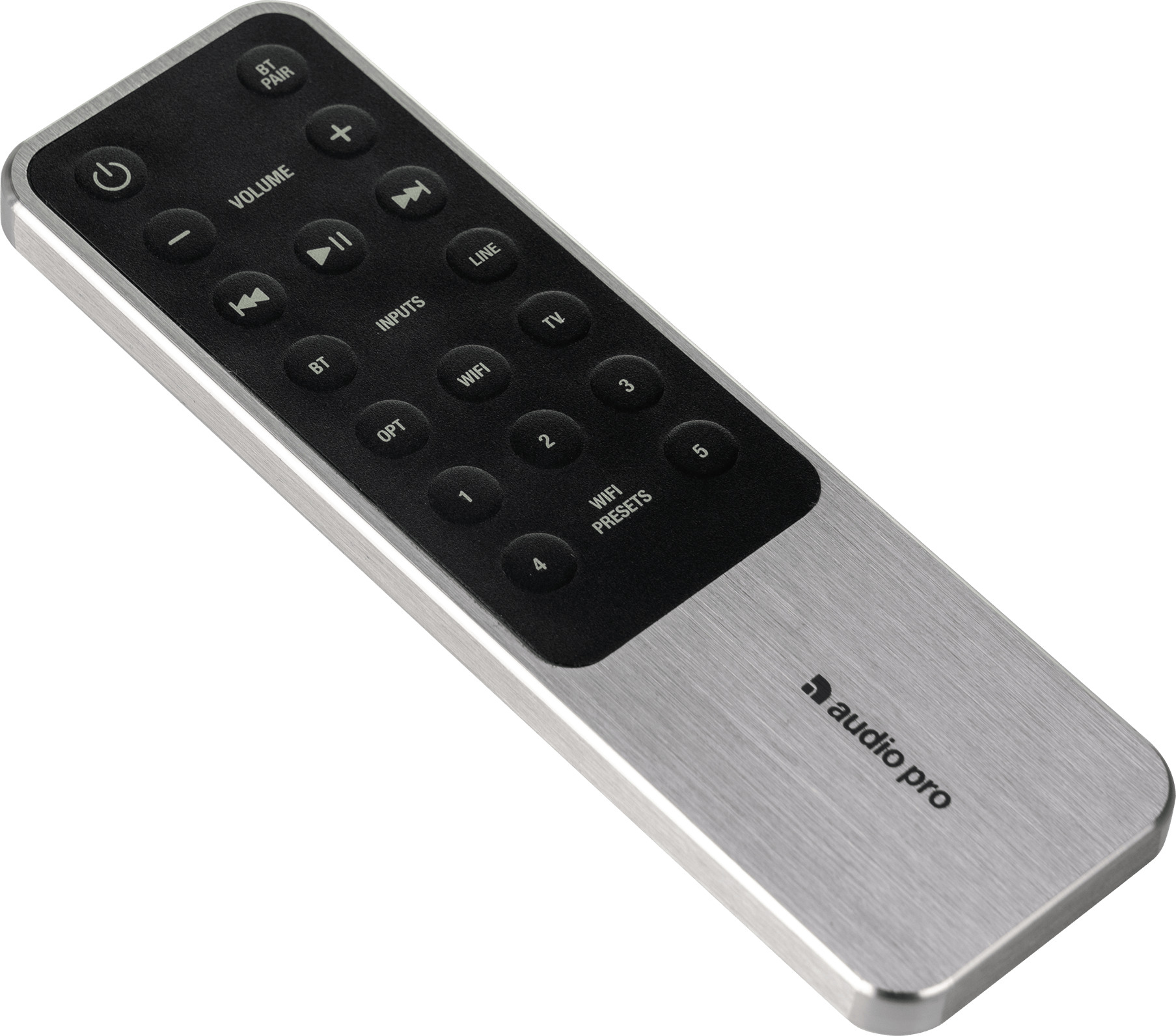 - Lors de la connexion à un téléviseur, nous utilisons l'ARC pour un contrôle facile via la télécommande. Diffusez de la musique à partir des principaux fournisseurs de streaming via WLAN ou Bluetooth. Connectez votre source numérique via l'entrée optique et votre source analogique via l'entrée RCA. Le contrôle s'effectue via l'application Audio Pro, soutenue par Linkplay, ou via la télécommande fournie. Utilisez les cinq présélections pour accéder facilement à vos stations de radio ou playlists enregistrées.