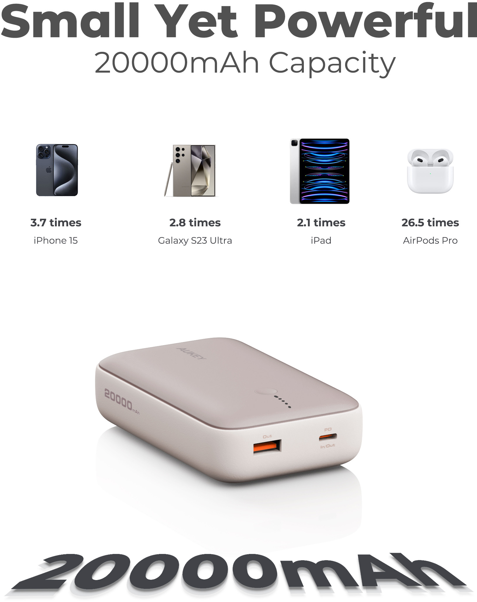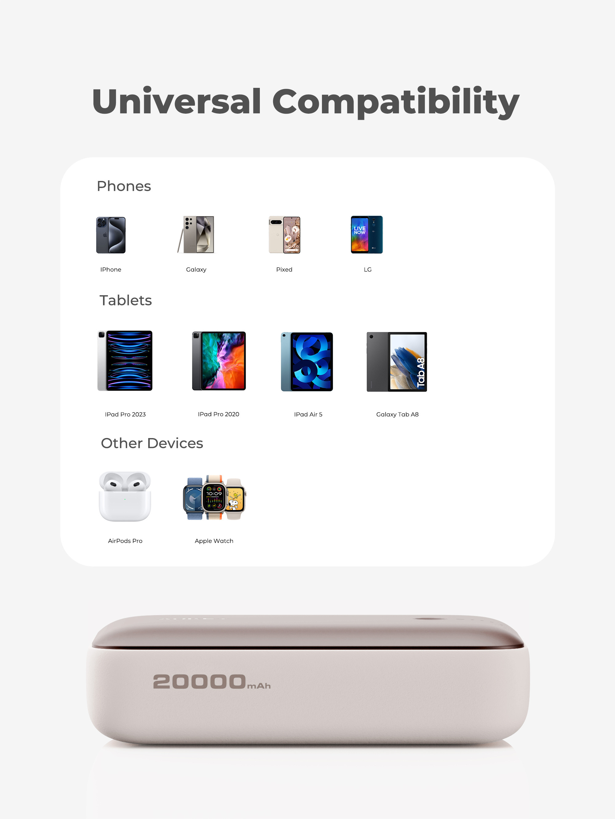 - Grande capacité : avec une capacité impressionnante de 20000 mAh, emballé dans un design compact, ce powerbank offre des possibilités de charge étendues qui vous permettent de recharger plusieurs fois la plupart des smartphones et même de prendre en charge des appareils plus grands comme les tablettes.