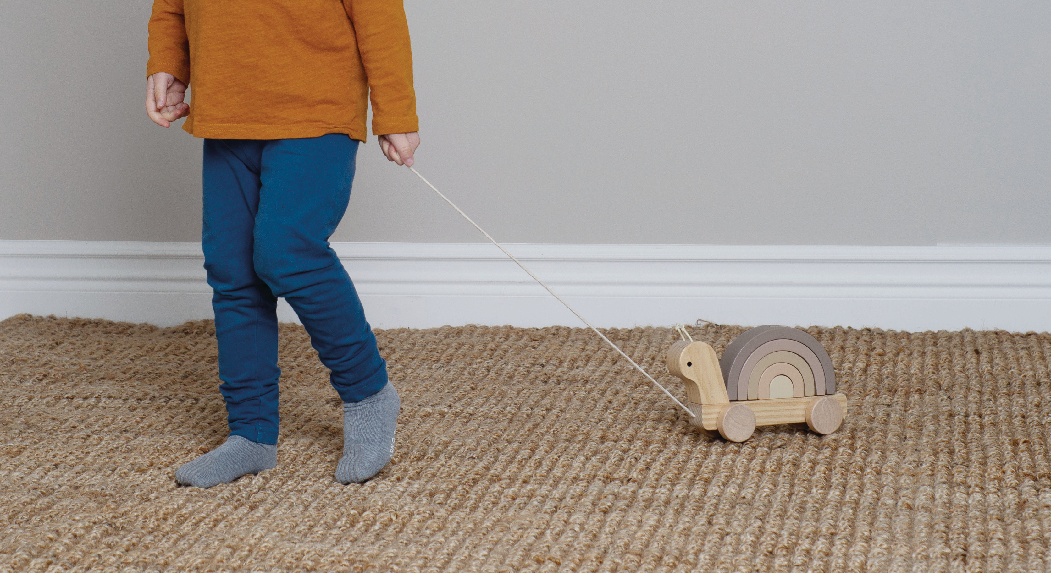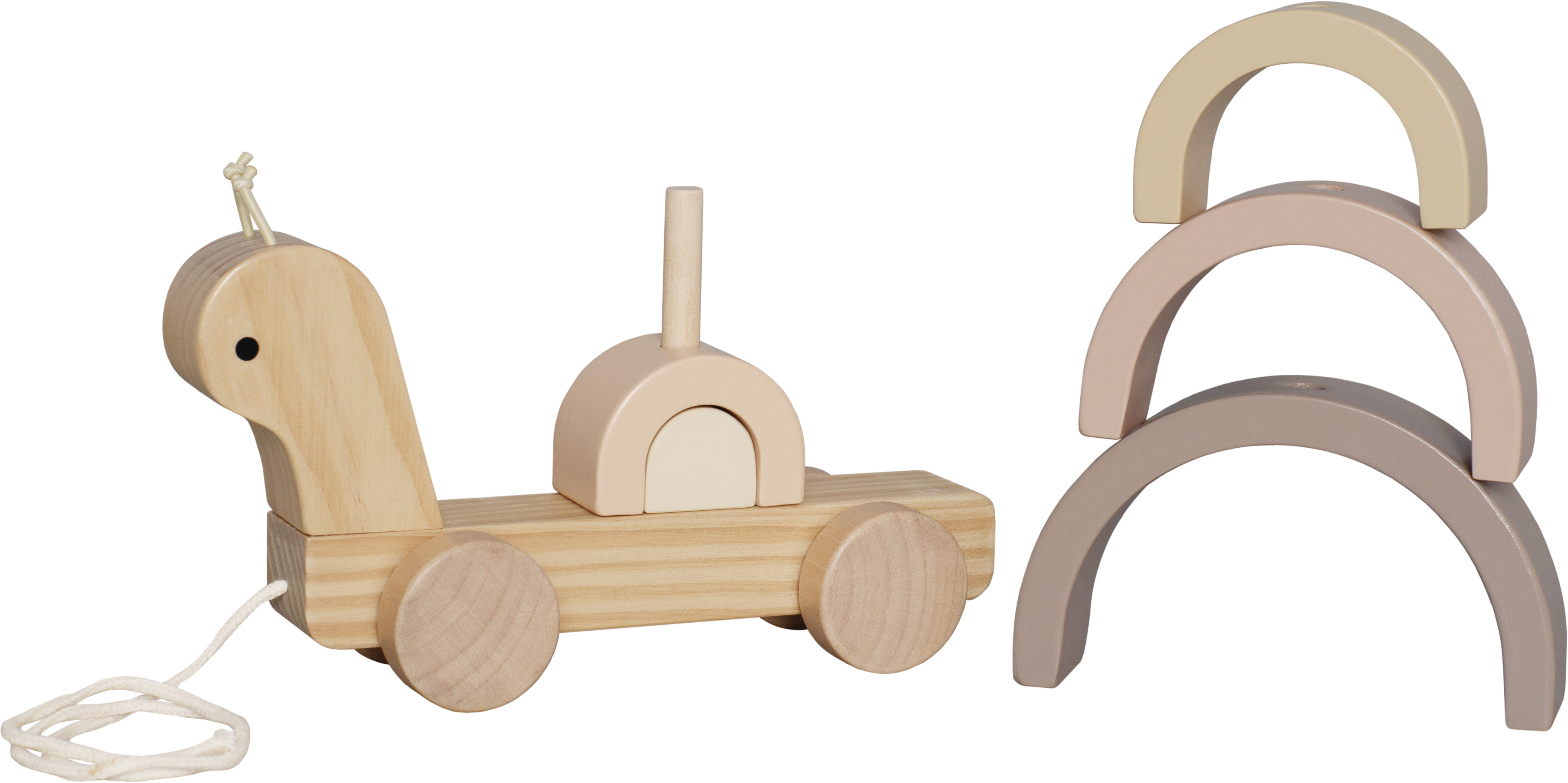 Adorable escargot de traction en bois avec un arc-en-ciel empilable sur le dos. Le compagnon idéal lorsque l'enfant fait ses premières promenades d'exploration. L'arc-en-ciel sur le dos de l'escargot peut être utilisé seul ou comme jouet empilé. Utilisez les pièces de l'arc-en-ciel pour construire des tunnels ou des ponts passionnants pour votre voiture préférée. Seule l'imagination de l'enfant fixe les limites. L'arc-en-ciel se compose de cinq pièces. Encourage le jeu créatif.