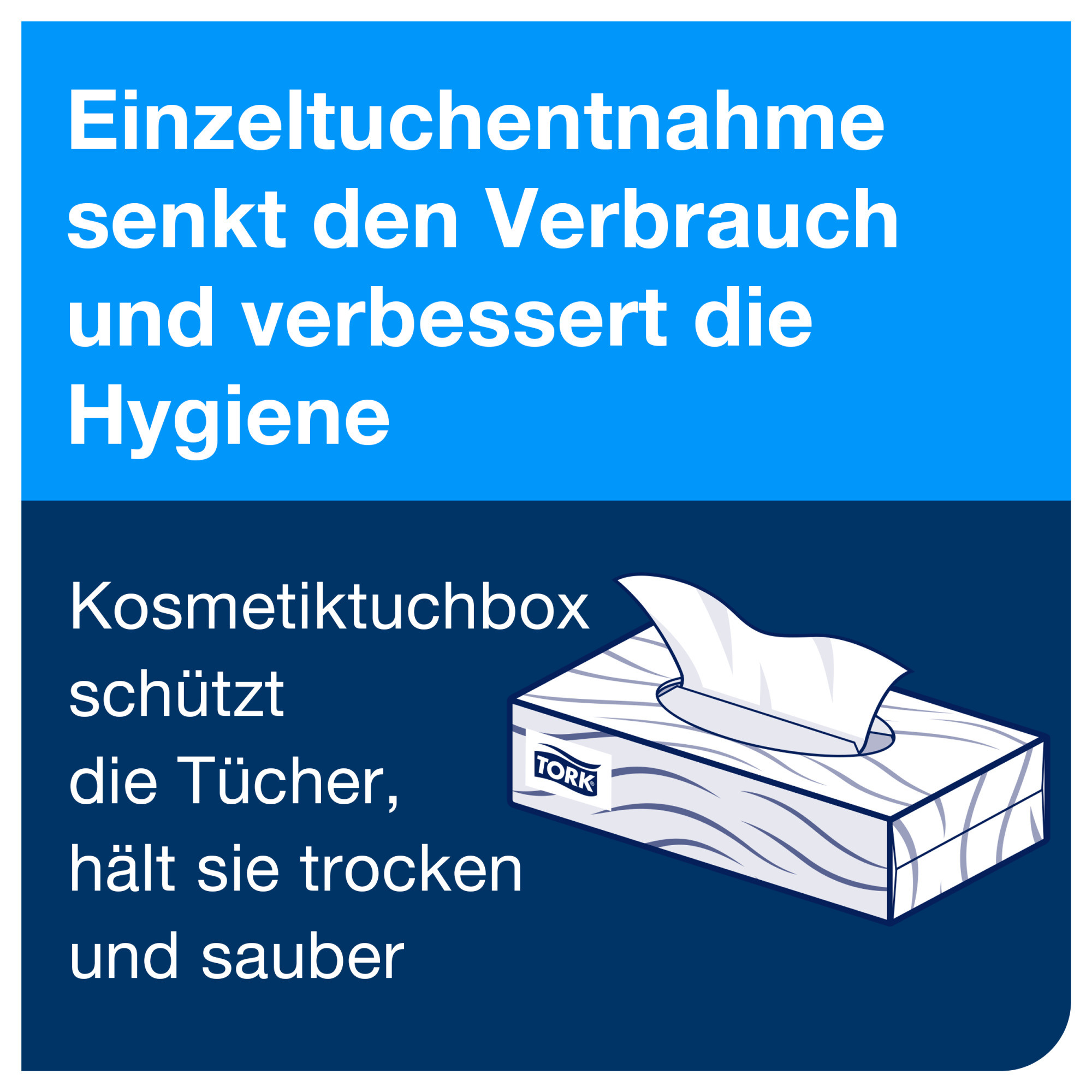 Les mouchoirs extra doux Tork offrent une douceur supérieure dans une jolie boîte rectangulaire moderne pour le confort de vos clients. La boîte de mouchoirs est adaptée au distributeur de mouchoirs Tork et se place où vous le souhaitez.