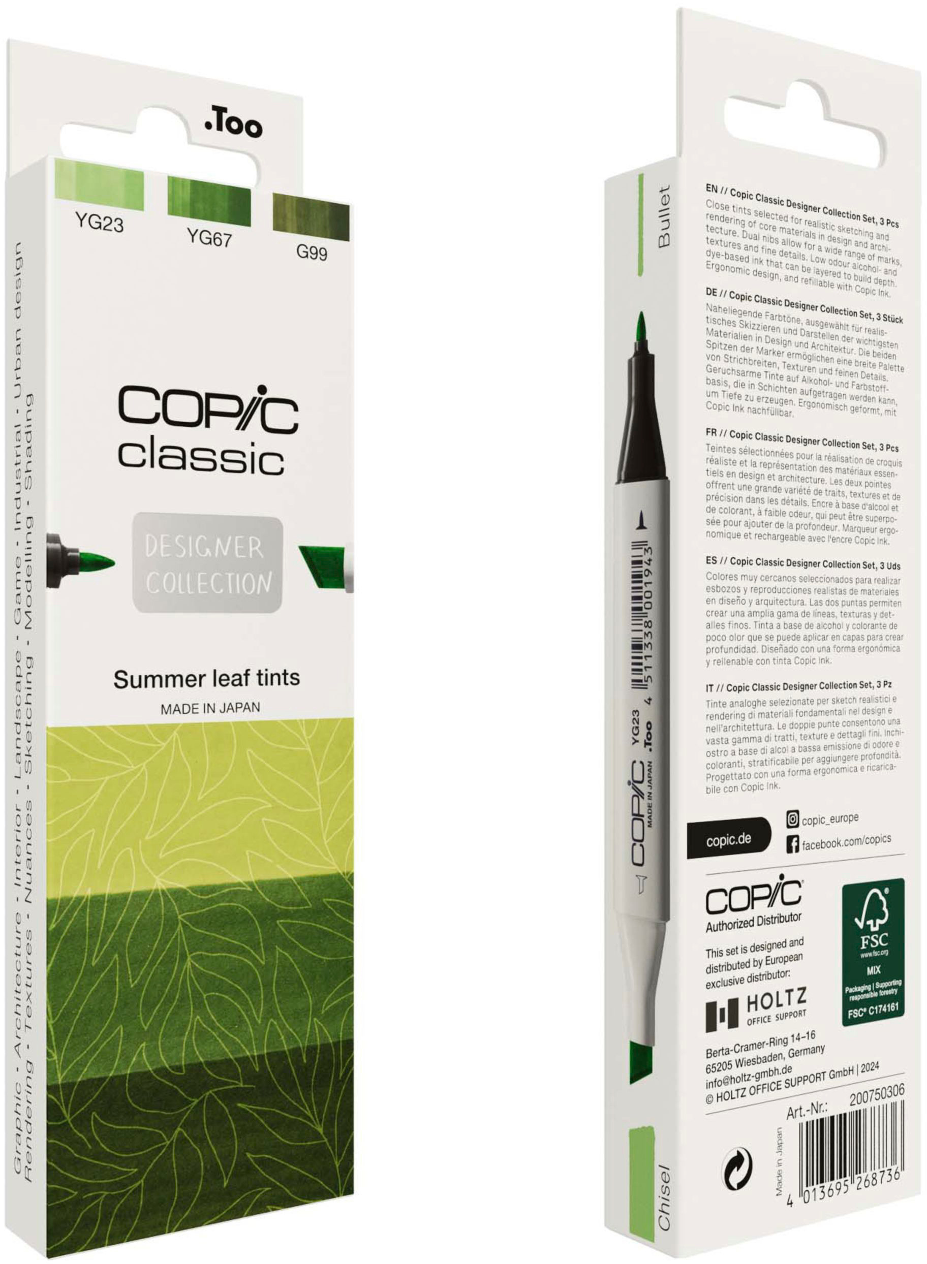 Copic Classic est parfait pour un travail précis et a la plus grande capacité d'encre de la gamme Copic et sur le et la faible émission d'odeur rendent le travail agréable pendant des heures. Fiable et durable, c'est un outil fiable pour les experts.