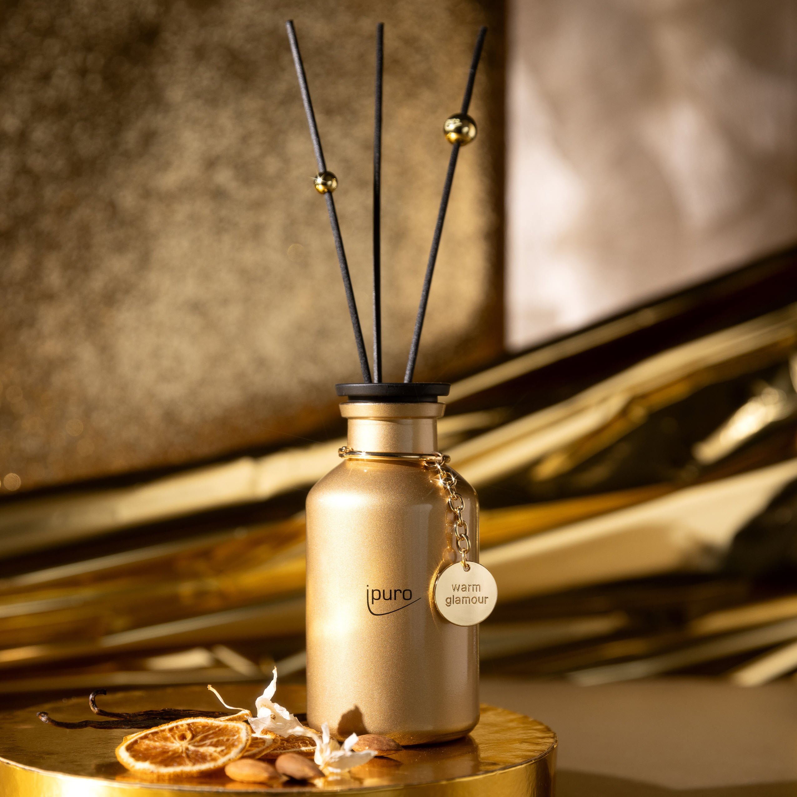 Ce parfum est synonyme de glamour pur ! L'amande, la pêche et la bergamote rencontrent l'anis étoilé, le jasmin et le caramel, accentués par une base de vanille, de bois de santal et de musc. Une composition parfumée chaude et hivernale qui diffuse un glow hivernal raffiné.