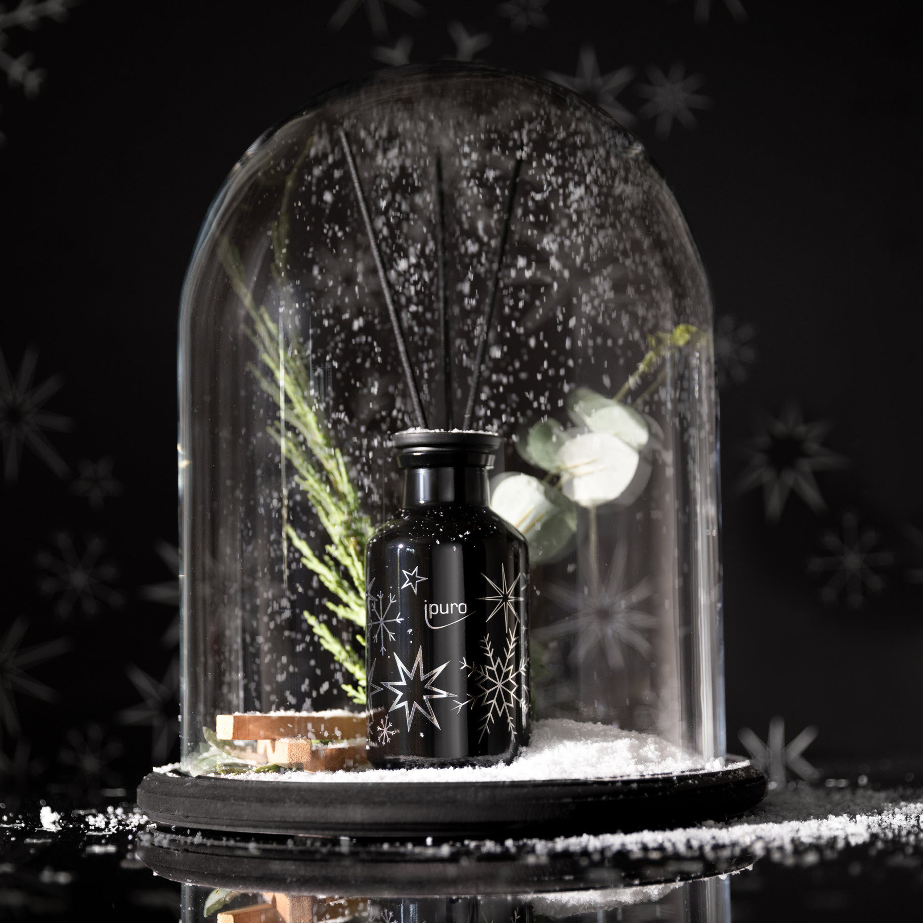 La magie de la première neige fraîche, une brise fraîche et enchanteresse flotte dans l'air. Des notes vertes et fraîches rappellent la pureté de la neige, tandis que l'eucalyptus et le thym créent un air pur et vivifiant. Des nuances chaudes et boisées ainsi qu'une douceur discrète procurent une étreinte chaleureuse et un sentiment de sécurité agréable les jours de grand froid.