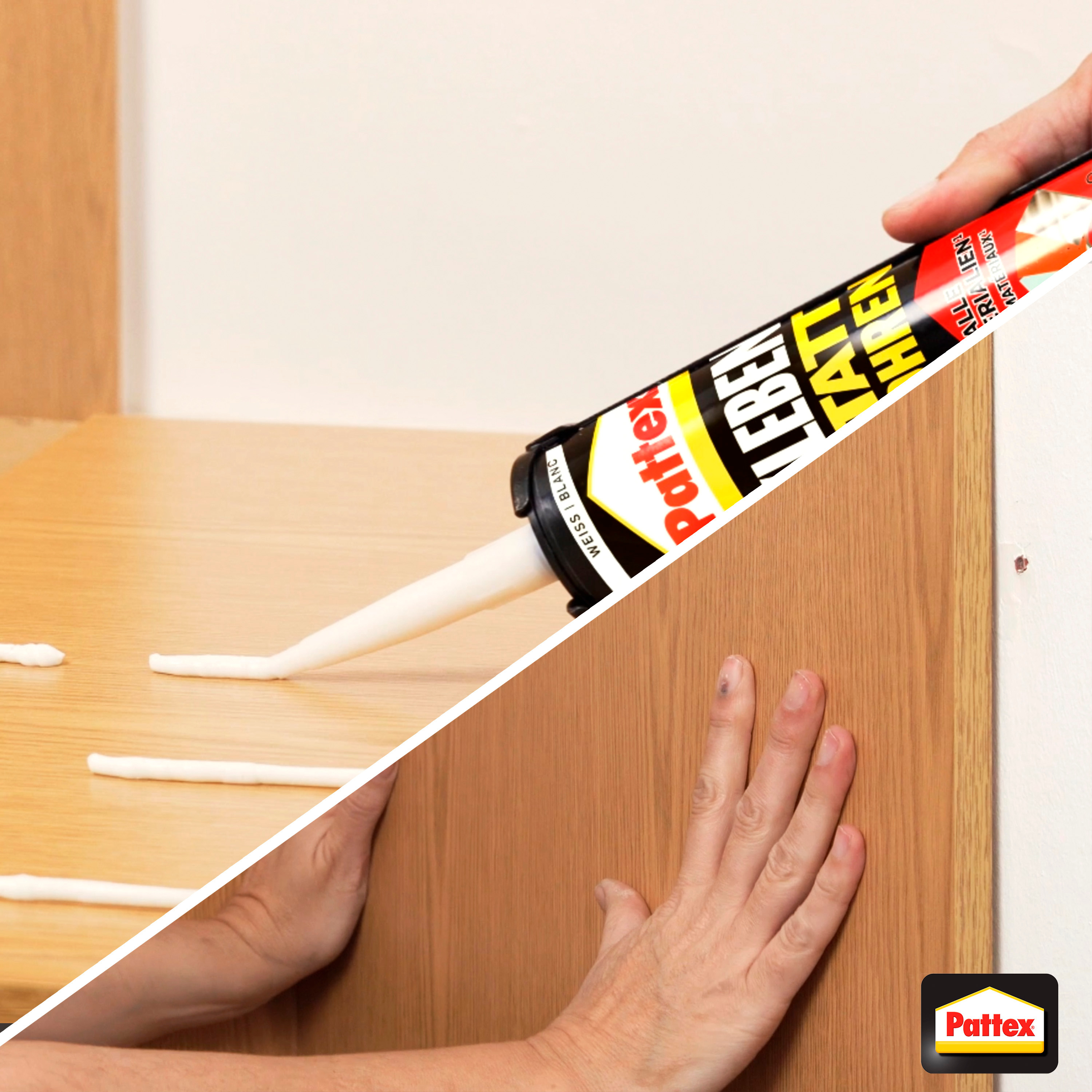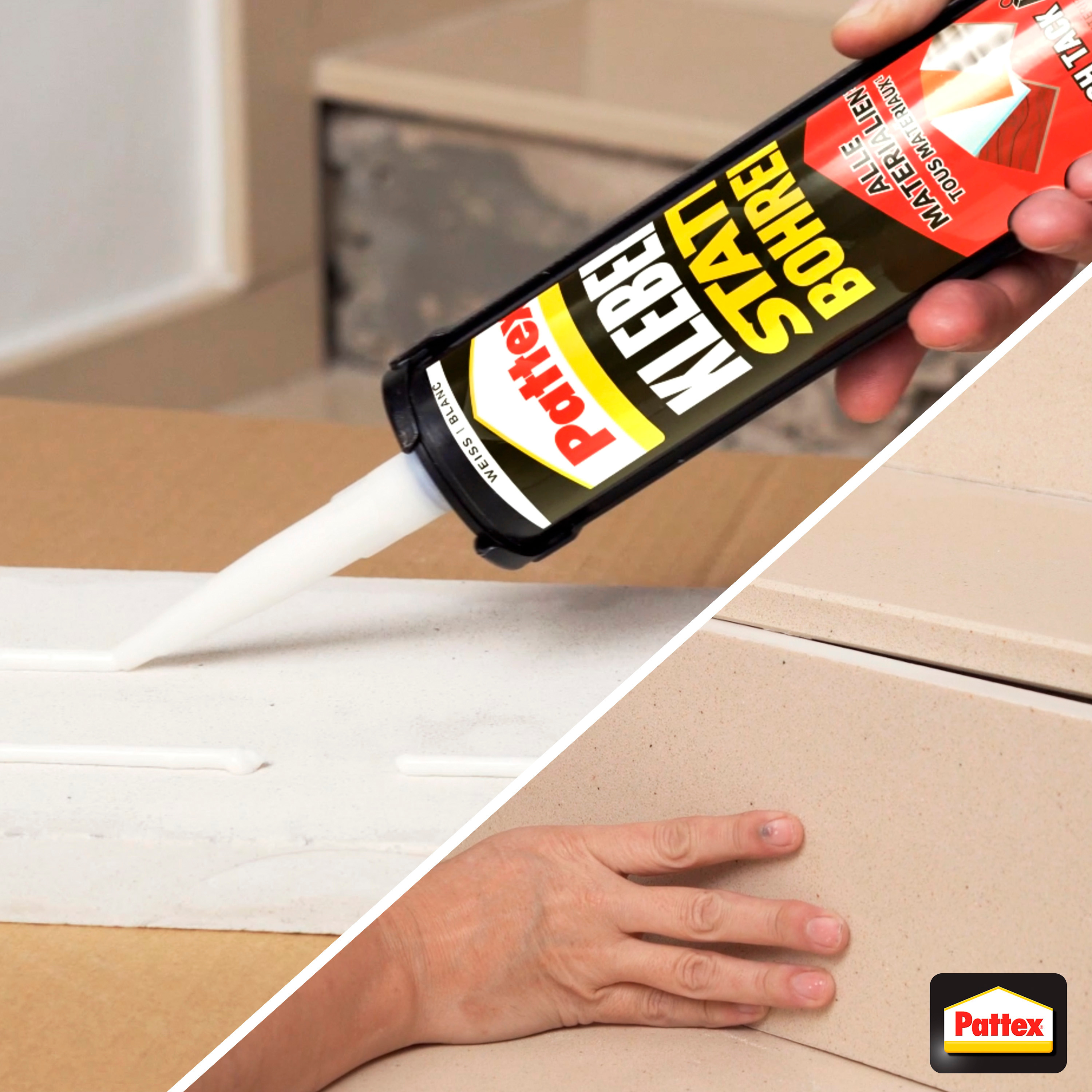 La colle de montage PATTEX Coller au lieu de percer High Tack est particulièrement adaptée aux projets de collage lourds grâce à sa forte adhérence initiale. La colle forte convient pour le collage, le montage et le remplissage d'espaces. La colle peut être utilisée sur la plupart des supports et matériaux, par exemple comme colle à bois, colle à céramique ou sur le béton, la brique, le verre et bien d'autres choses encore.