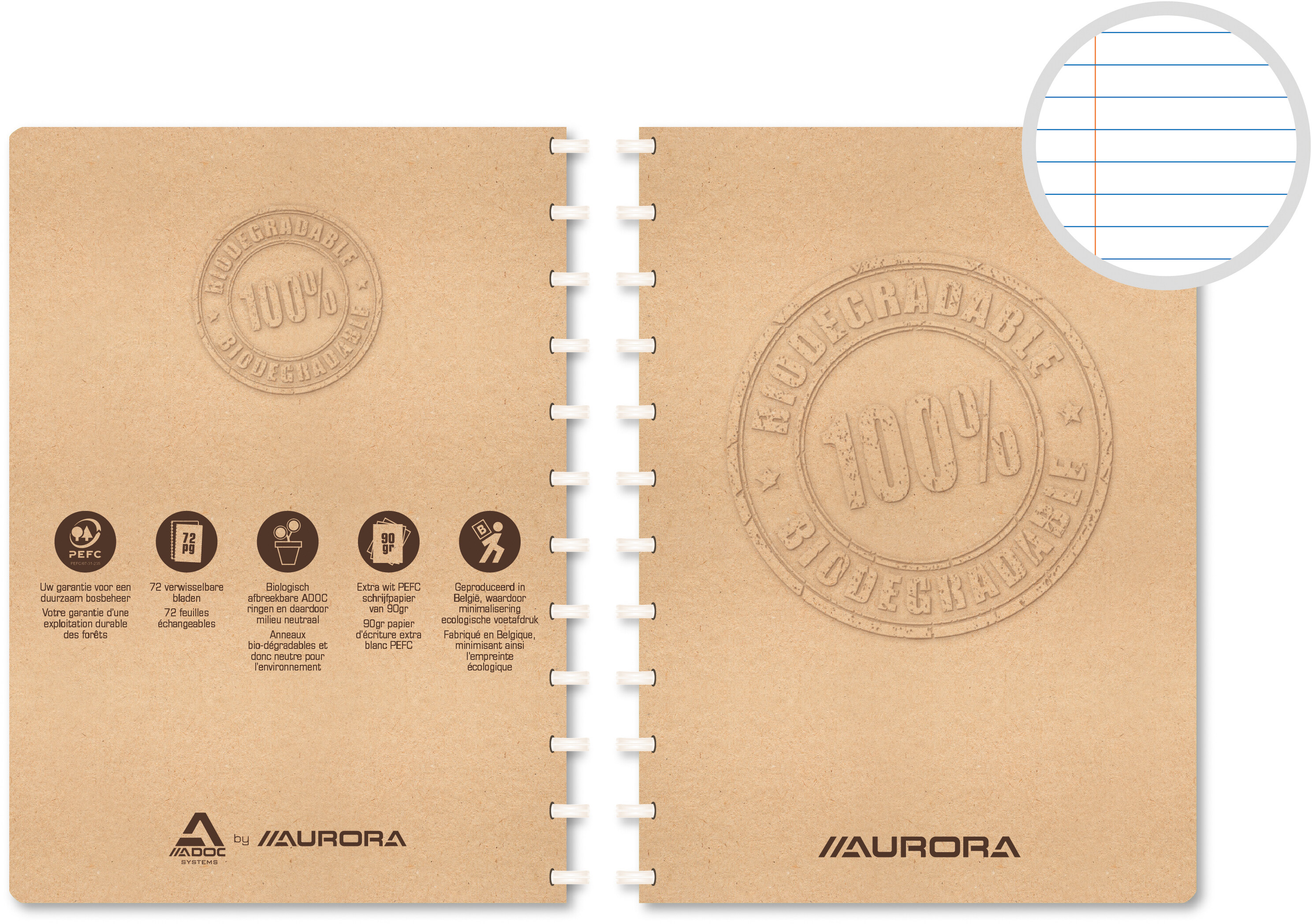 Cahier à spirales Adoc BIO - Durable grâce au design. Le carnet Adoc Bio Discbound est fabriqué à partir de matériaux certifiés PEFC, issus de forêts gérées de manière responsable, et livré dans des emballages entièrement recyclables - un choix vraiment écologique. Outre son design durable, ce carnet de notes assure une organisation parfaite. Il contient 144 pages lignées (90 g/m²) avec des lignes de 8 mm, idéales pour prendre des notes claires et structurées. Le système Disc-Bound maintient les pages en place tout en permettant de les réorganiser facilement. La couverture cartonnée robuste protège tes notes au quotidien. Léger mais spacieux - l'Adoc Bio Discbound Notebook est parfait pour les idées, les listes, les devoirs ou les notes de réunion et allie durabilité, qualité et utilité au quotidien.