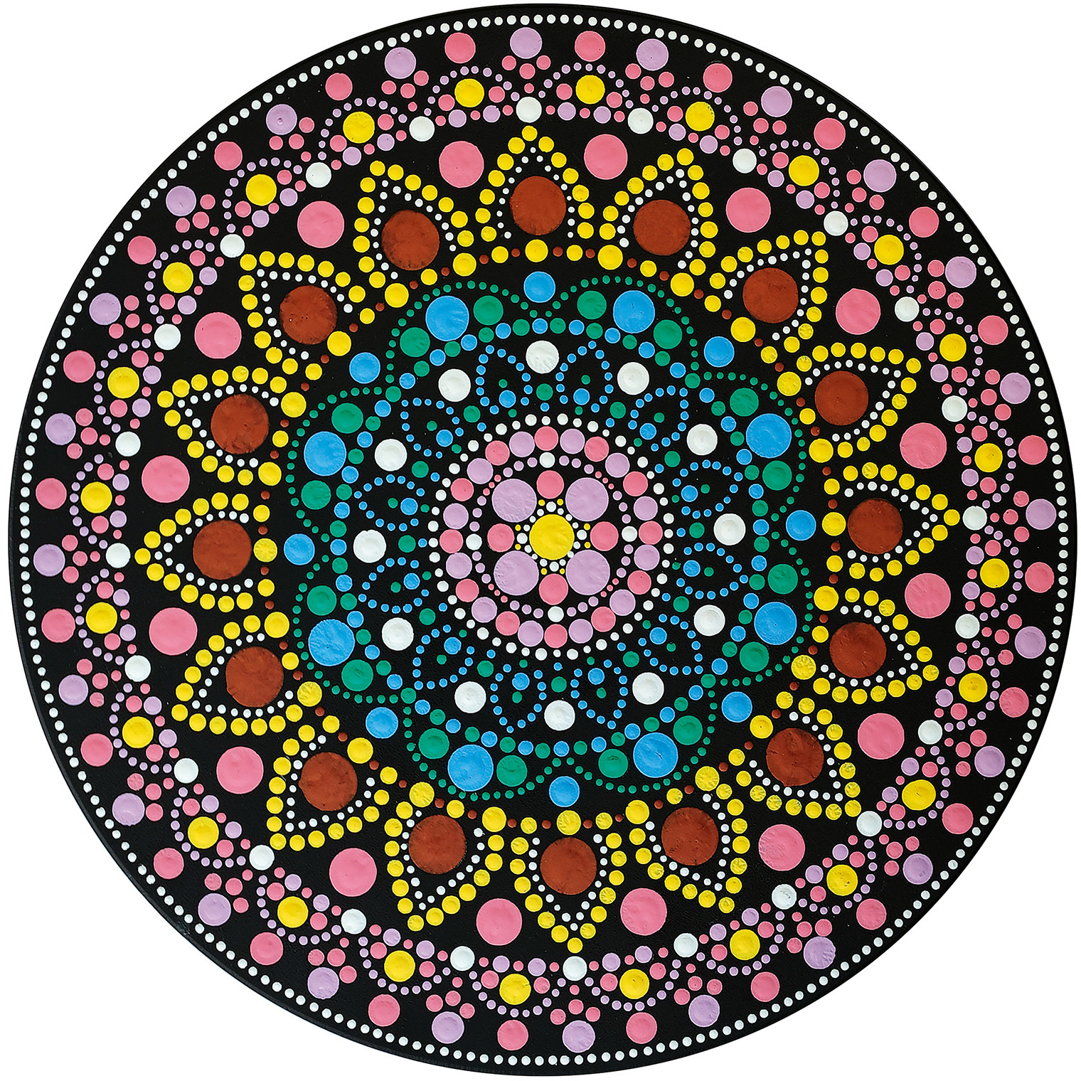 Conçu pour faciliter l'activité créative, ce kit contient un panneau MDF de 30 cm et un gabarit pratique qui permet de marquer et d'identifier les positions des points à l'aide d'un crayon. Une fois les points tracés, il ne reste plus qu'à les appliquer à l'aide d'outils de dotting de différents diamètres, pour un résultat précis et harmonieux.