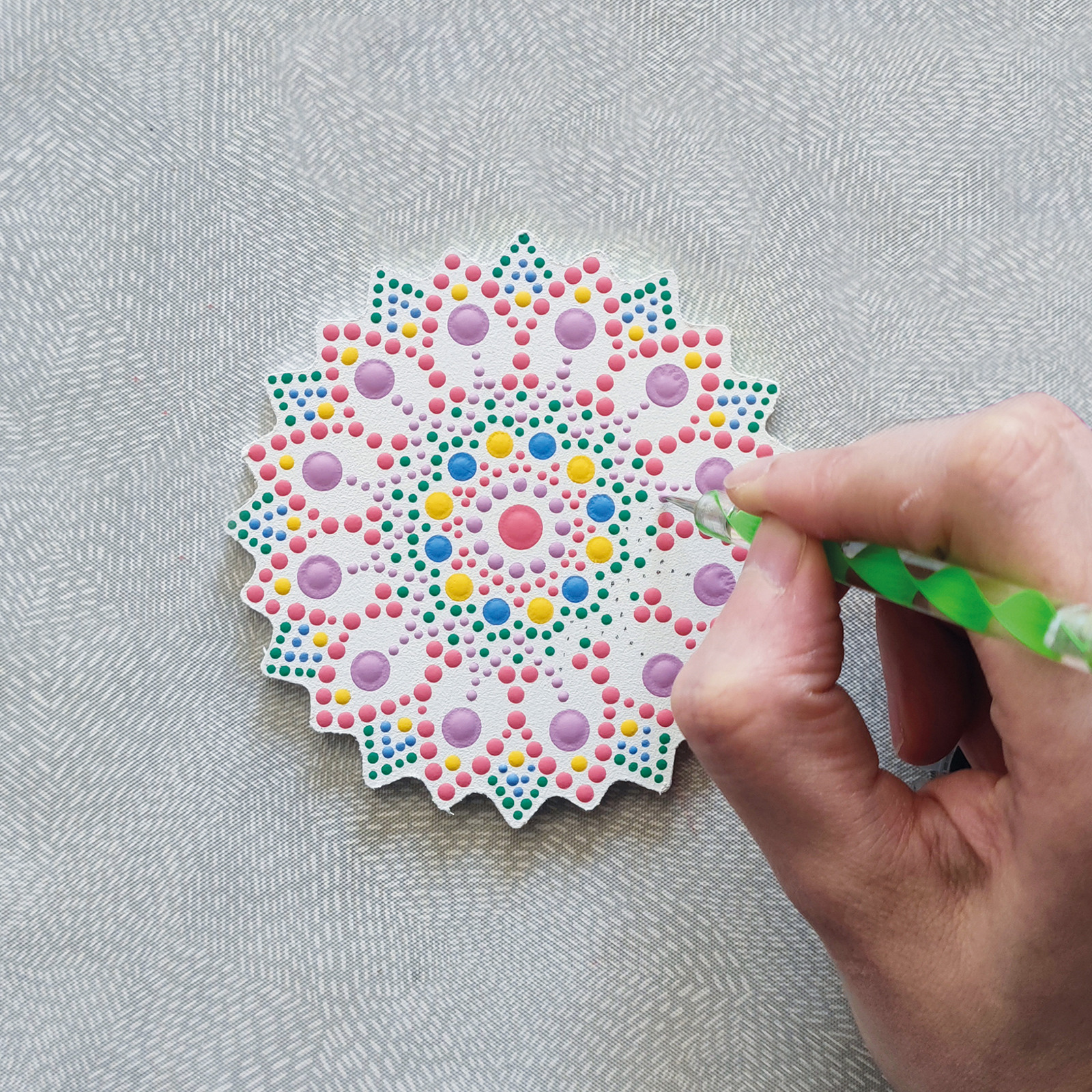 Ce kit contient 10 outils avec 14 pointes différentes pour appliquer tout type de peinture et créer des mandalas de différents formats. Les outils sont très faciles à utiliser - même pour les débutants - et se nettoient facilement à l'eau après usage.
