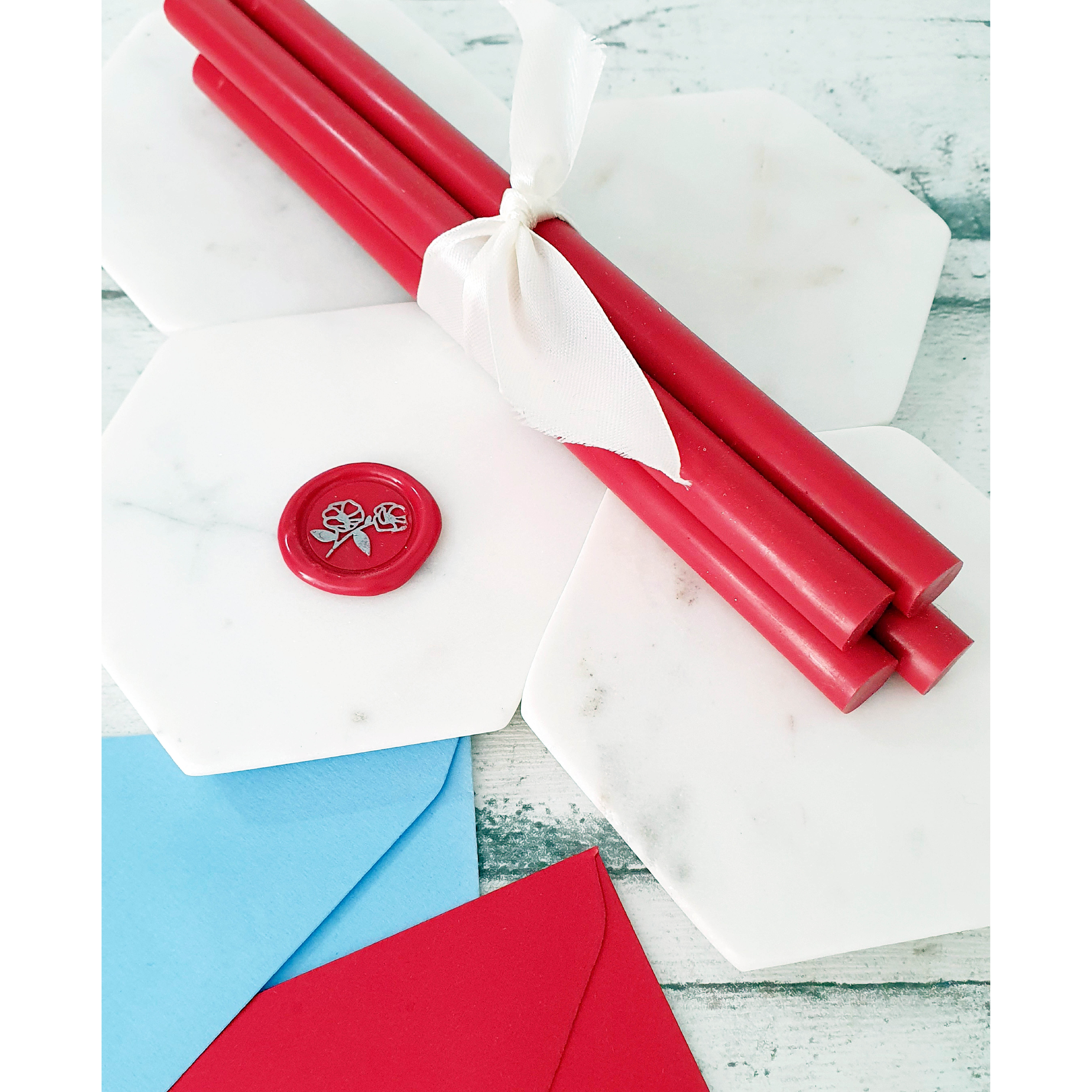Cachet de cire : depuis l'Antiquité, le cachet de cire garantit l'authenticité et la confidentialité des documents. Il confère une touche de solennité à des occasions particulières telles que les invitations à un mariage ou l'annonce d'une naissance.