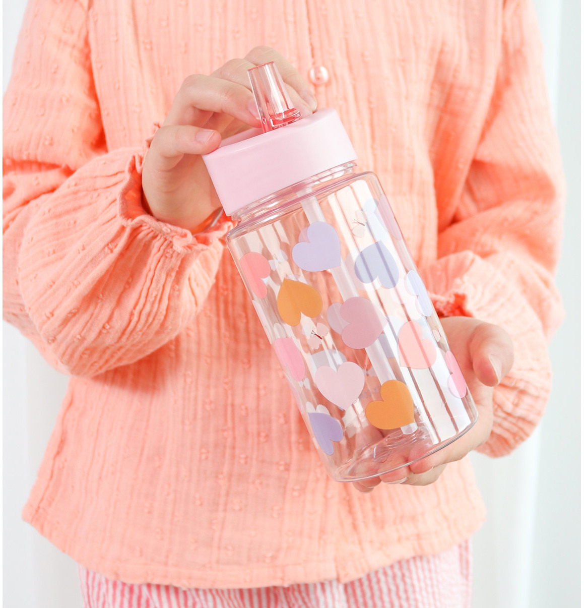 Cette gourde a un bec verseur pratique qui permet de ne plus renverser d'eau. Idéale pour l'école ou les déplacements, elle se combine bien avec une boîte à pain ou un sac à dos assortis. La paille est cassée ou très sale ? Il suffit alors de la remplacer par une nouvelle paille. Sympa : la gourde est livrée avec un autocollant gratuit !