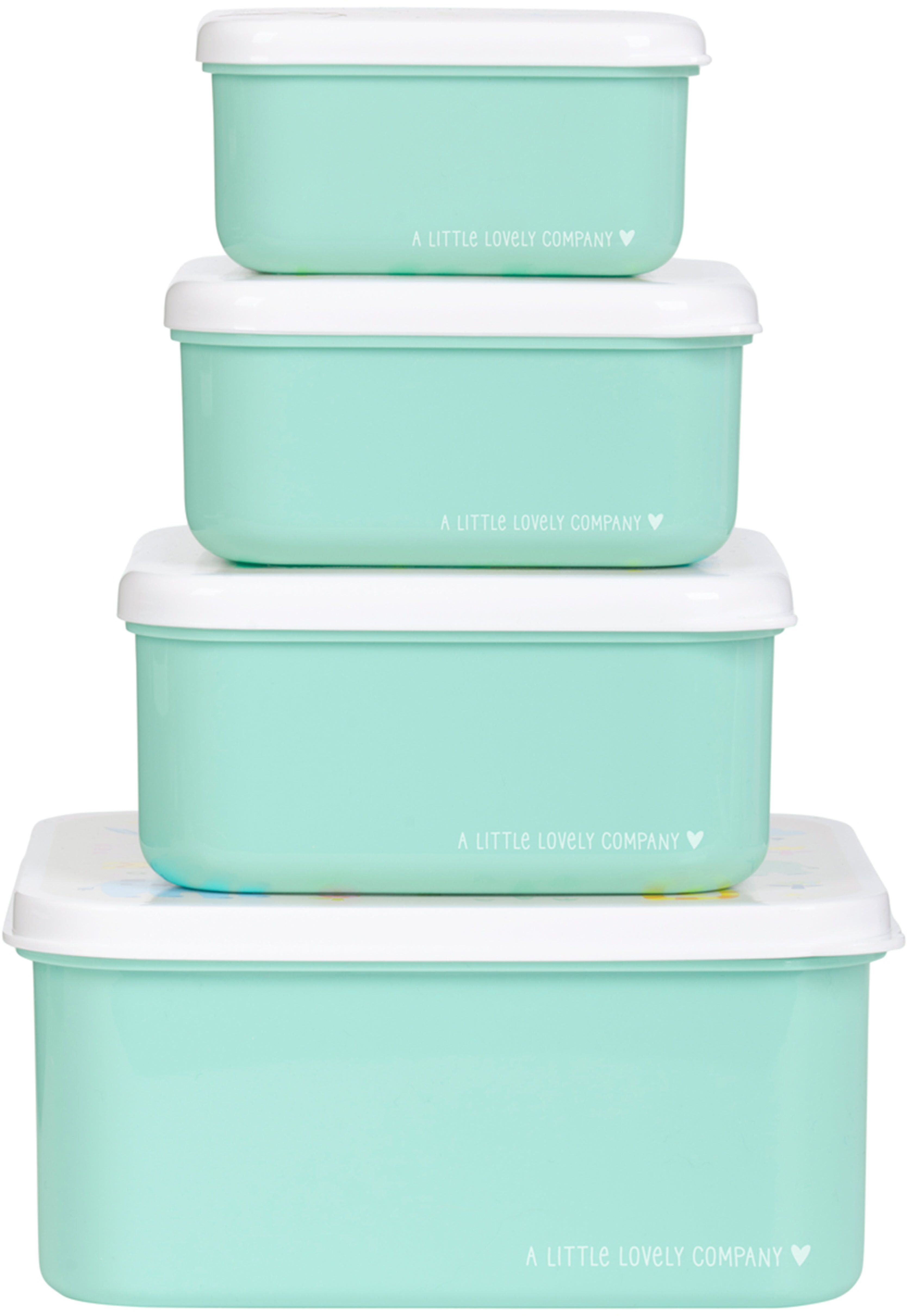 Set de quatre boîtes à repas et à snacks de différentes tailles et aux designs assortis. Idéales pour l'école, les déplacements et la conservation des snacks à la maison. Grâce à la languette sur le côté du couvercle, elles s'ouvrent et se ferment facilement, et les boîtes s'empilent les unes dans les autres pour un rangement aisé.