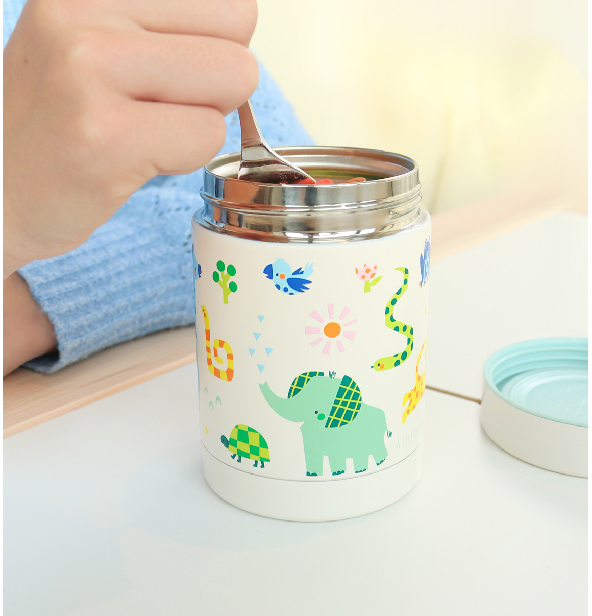 Cette adorable boîte à lunch isotherme est idéale pour l'école ou les excursions. Grâce à l'isolation à double paroi, les repas restent à température pendant plusieurs heures. Le récipient ne fuit pas et est facile à transporter. Idéal pour les soupes, les ragoûts, les pâtes ou les repas froids.