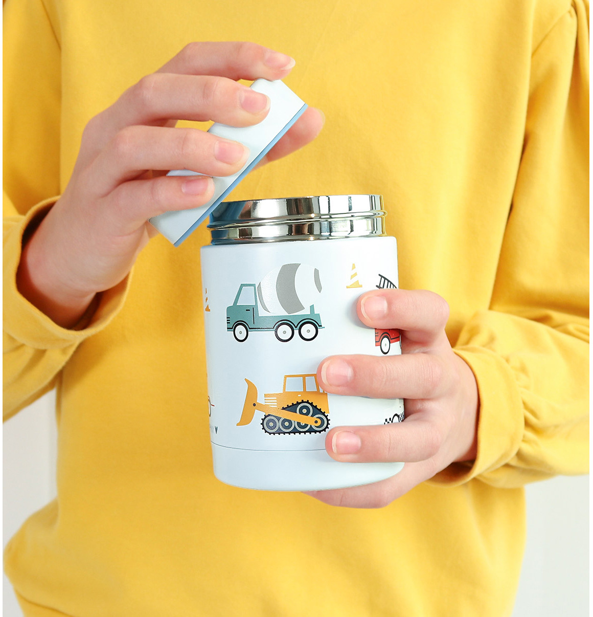 Cette adorable boîte à lunch isotherme est idéale pour l'école ou les excursions. Grâce à l'isolation à double paroi, les repas restent à température pendant plusieurs heures. Le récipient ne fuit pas et est facile à transporter. Idéal pour les soupes, les ragoûts, les pâtes ou les repas froids.