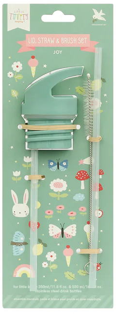 Set composé d'un bouchon, d'une paille et d'une brosse pour la gourde A Little Lovely 350 ml en acier inoxydable.