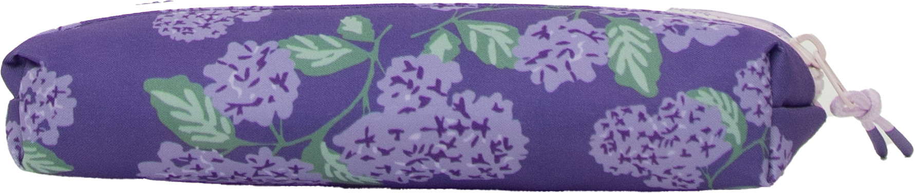 Rundes Stifteetui aus Polyester mit verspieltem, floralem Design in blau und violettönen Mit seinen Massen von 22 × 7,5 cm bietet es ausreichend Platz für Stifte und kleine Schreibutensilien. Leicht, praktisch und ideal für Schule, Büro oder unterwegs.