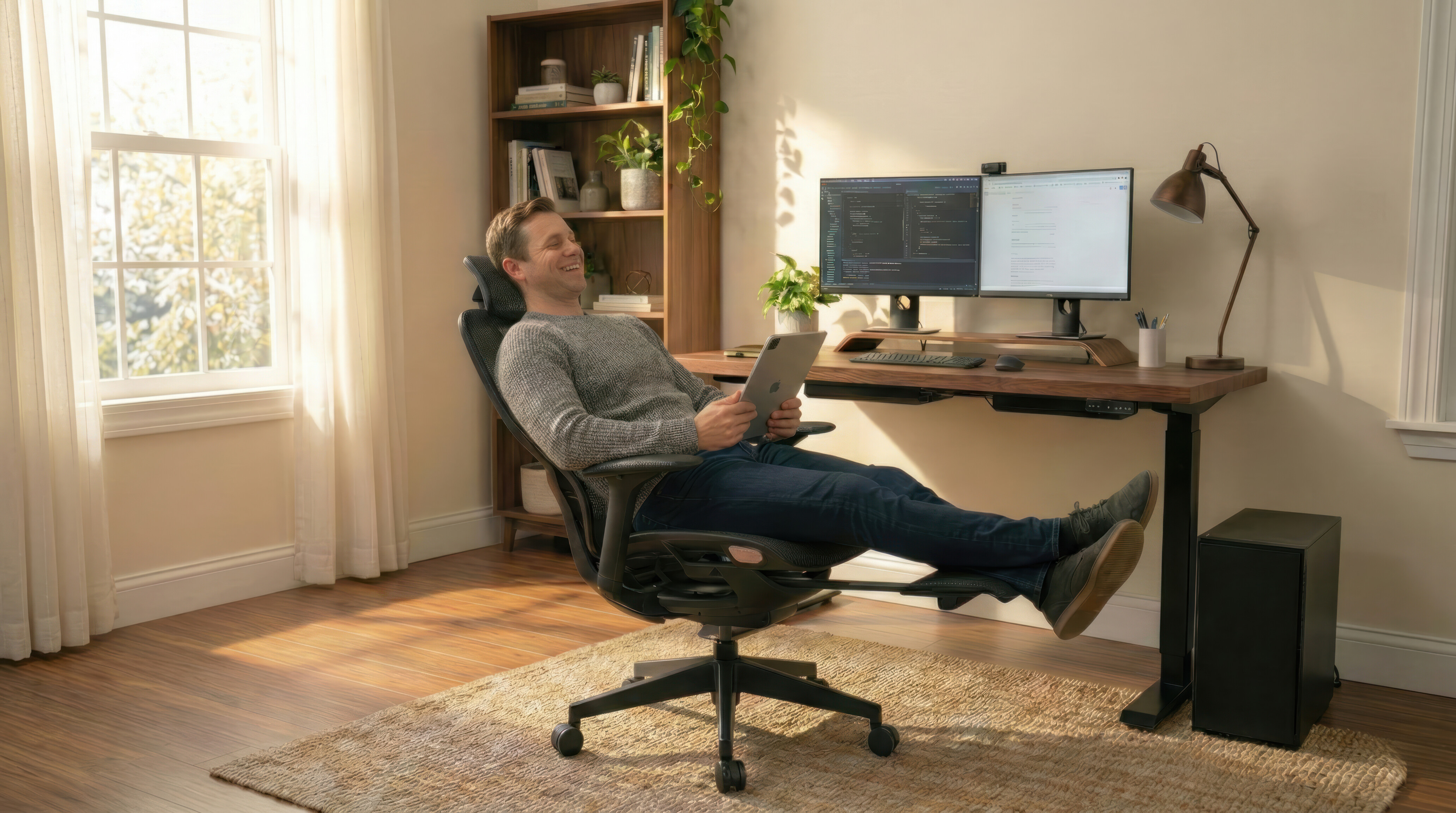 Découvrez l'Aero - un siège de bureau ergonomique haut de gamme qui allie design moderne et confort maximal. Idéal pour les postes de travail exigeants, les bureaux à domicile et les salles de jeux. L'Aero combine des matériaux en mesh respirant qui garantissent une ventilation optimale pour un confort durable - même en cas d'utilisation intensive. La finition garantit un aspect haut de gamme qui attire les regards. L'Aero ne convainc pas seulement en mode travail, mais aussi pendant les pauses : grâce au repose-pieds escamotable, la chaise peut être mise dans une position allongée confortable. Idéal pour de courtes pauses, des pauses de lecture détendues ou simplement pour se pencher en arrière après ou pendant une longue réunion. Le repose-pieds se range sous le siège pour un gain de place et se retire en un tour de main. Les accoudoirs 4D innovants permettent un réglage flexible dans toutes les directions - pour un confort maximal et un soutien parfait dans toutes les positions d'assise.
