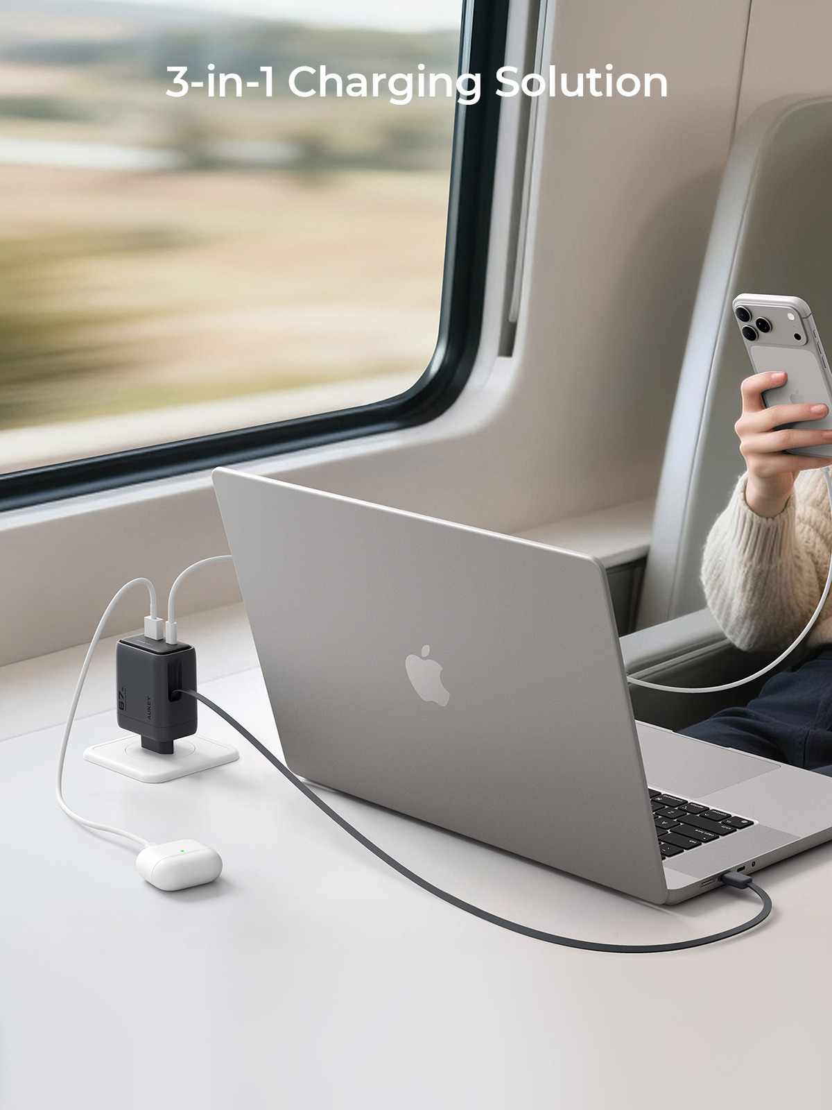 - Charge à grande vitesse de 67 W : fournit une puissance de sortie maximale de 67 W via un seul port USB-C. Recharge un MacBook Air M2 de 0 % à 50 % en seulement 30 minutes (protocole PD 3.0).