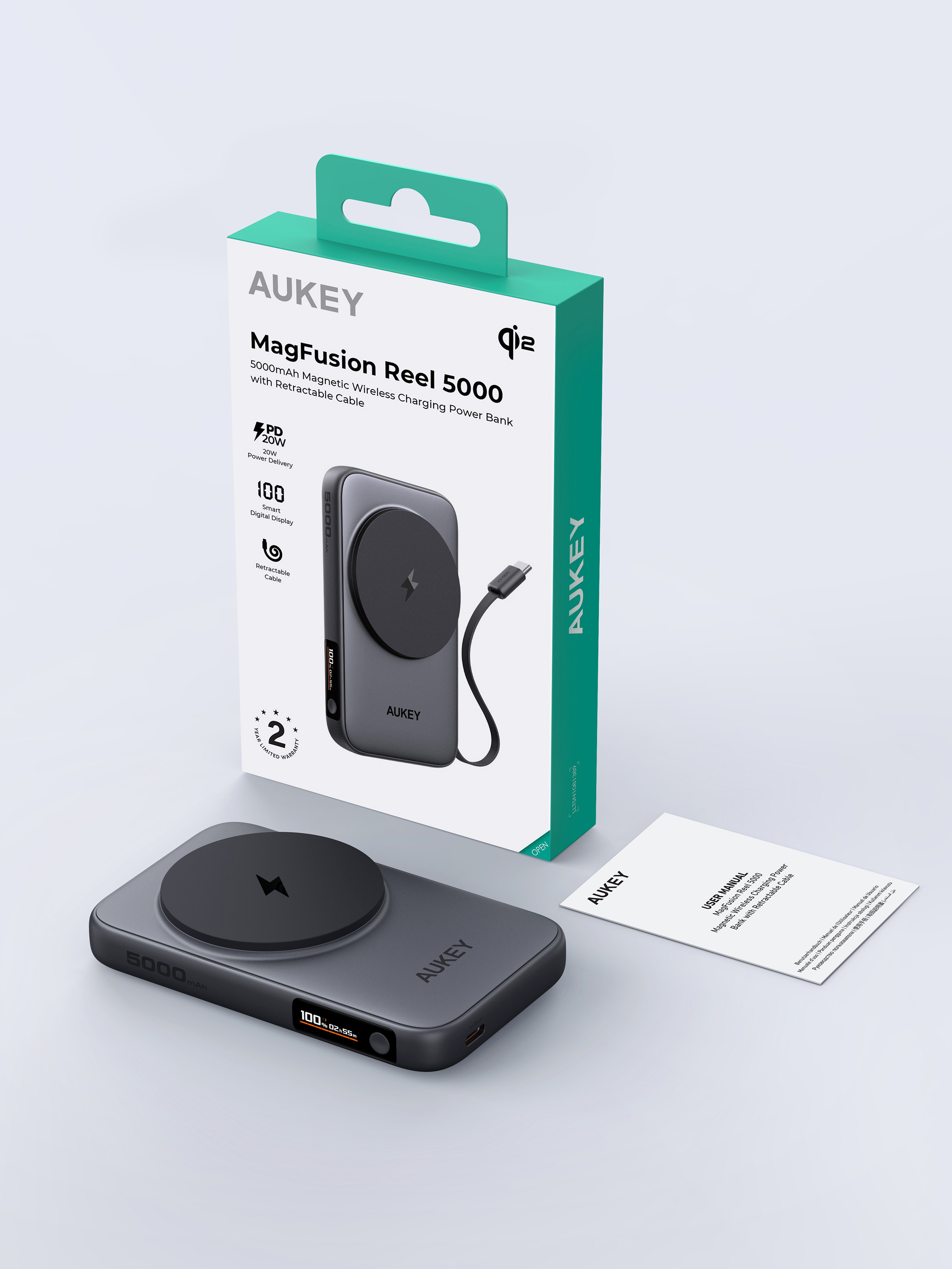 AUKEY Spark Sling 20000mAh PB PB-Y48 100W PD Bild-in-USB-C Cal.Gr