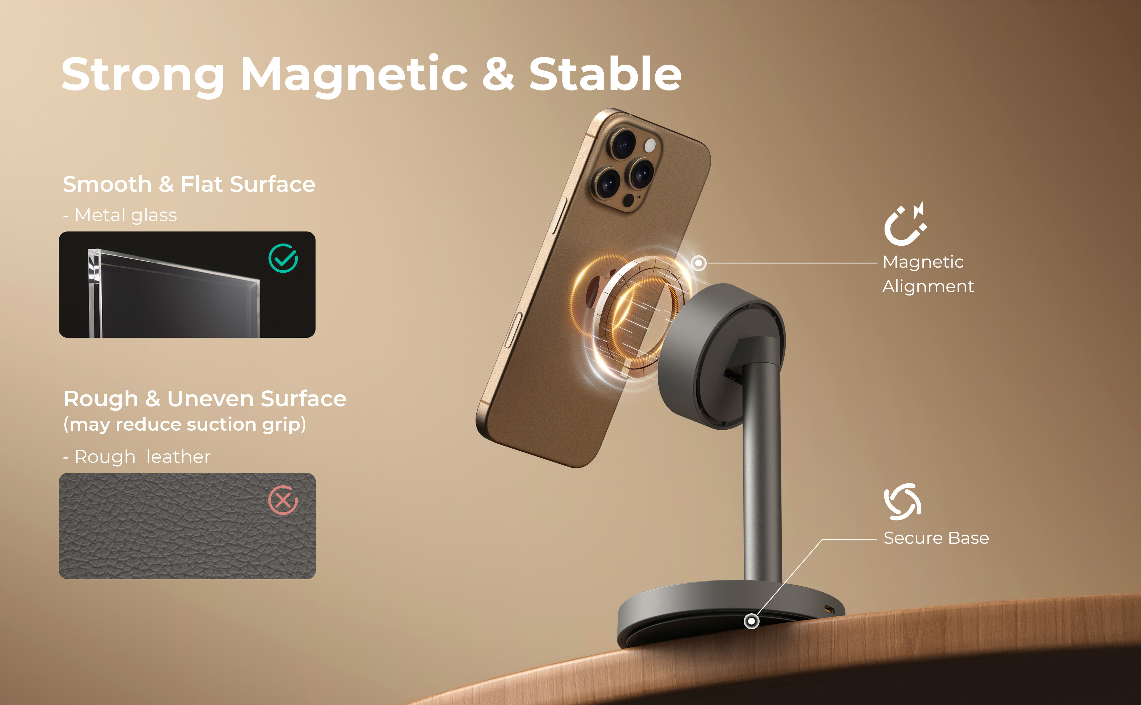 - Puissante force magnétique : maintient l'appareil dans une position optimale pendant le chargement pour garantir une alimentation en énergie sans interruption.