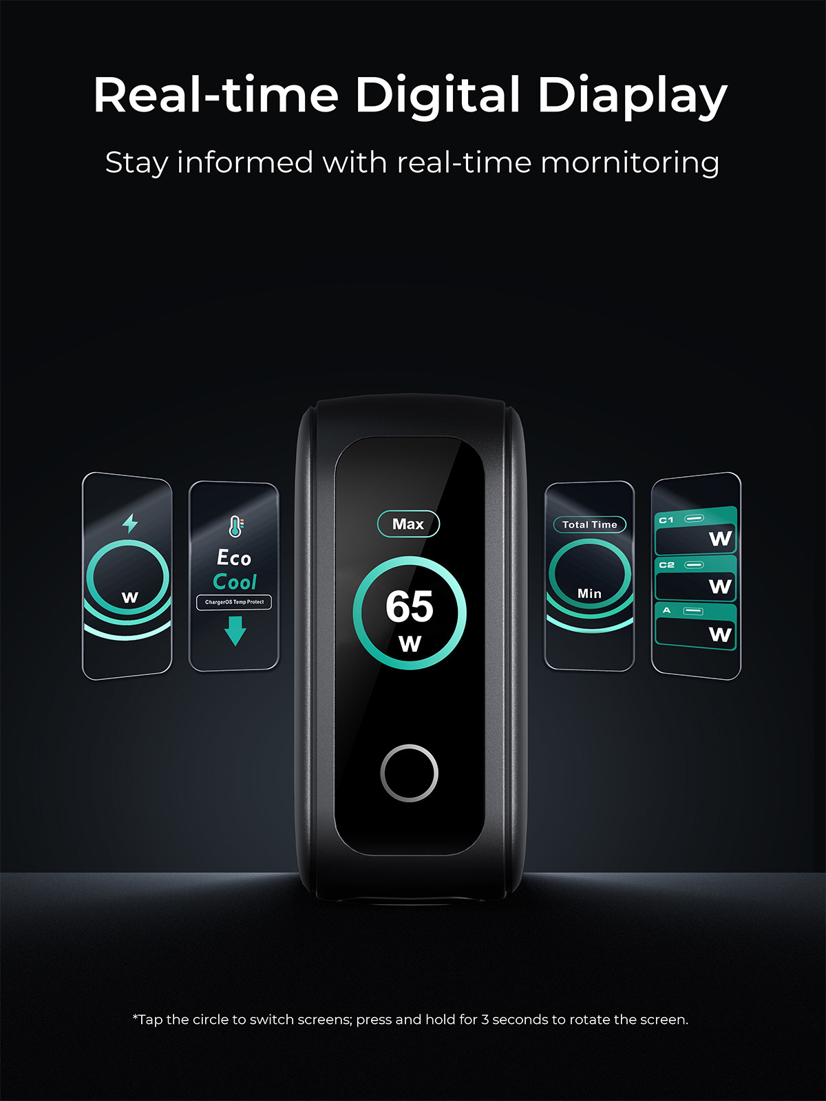 Le chargeur GaN avancé combine une forte puissance de charge avec un écran intégré pratique. Grâce aux prises interchangeables pour différents pays, la compatibilité mondiale est garantie. Que ce soit pour une utilisation quotidienne, un voyage d'affaires, à la maison ou au bureau, ce chargeur s'adapte parfaitement à toutes les situations.