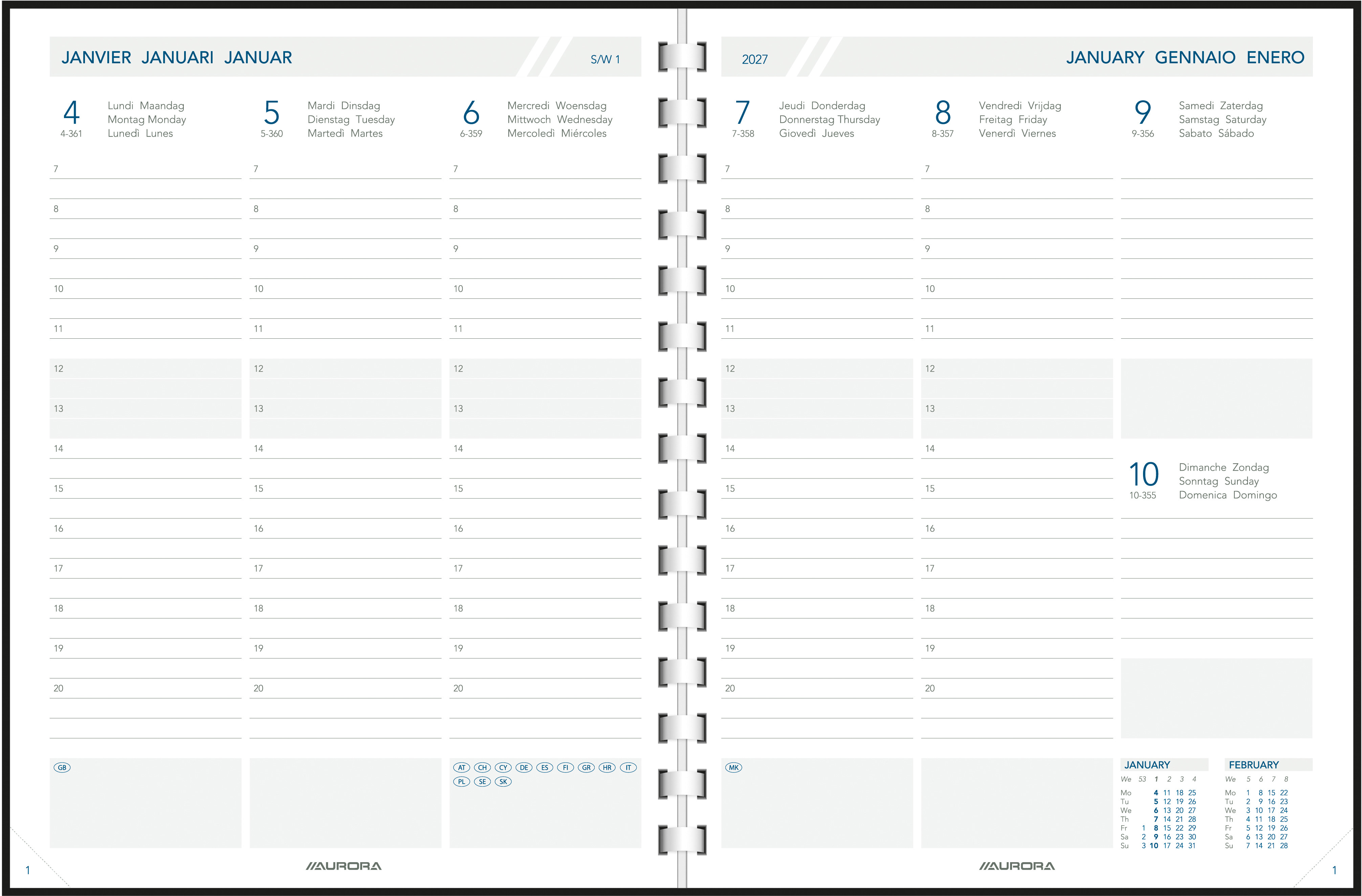 AURORA Agenda Finesse Business 2027 2918P 1S/2P noir ML 17.5x22.5cm
