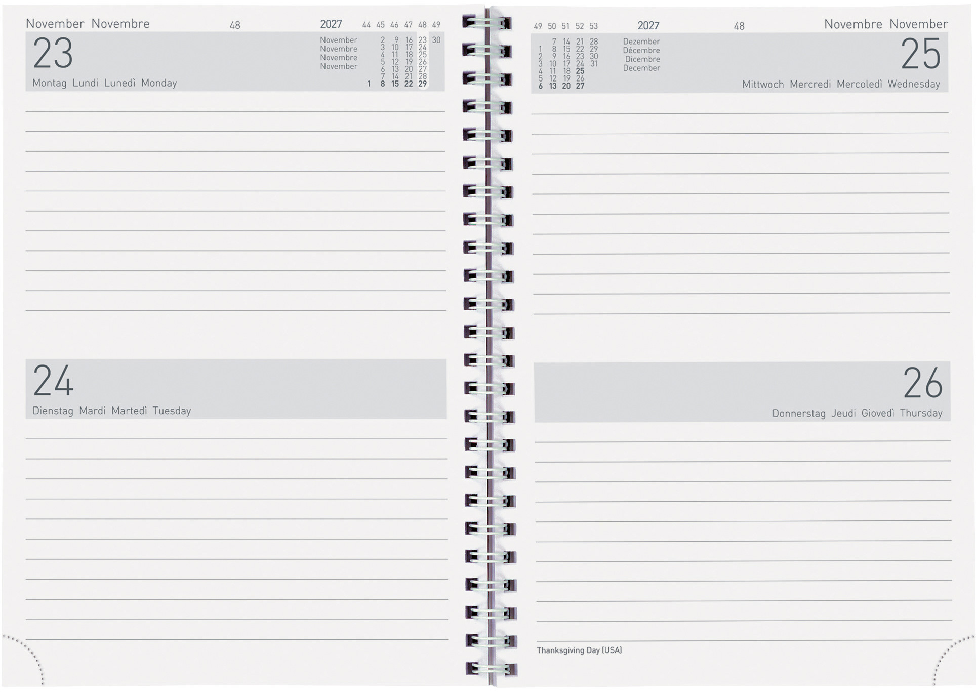 L'agenda professionnel BIELLA est idéal pour une utilisation quotidienne. L'agenda professionnel avec 2 jours par page vous garantit beaucoup de place pour planifier, la possibilité de prendre des notes et des rappels.