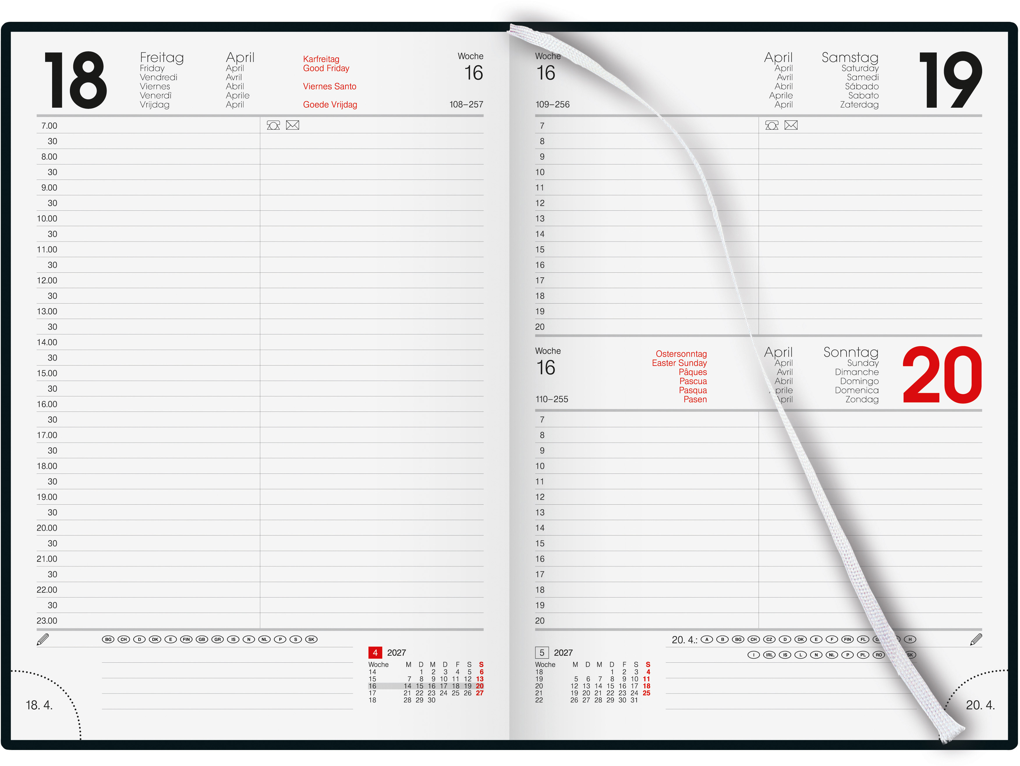 L'agenda professionnel Budget est idéal pour une utilisation quotidienne. Avec 1 jour par page, il garantit beaucoup de place pour la planification, la possibilité de prendre des notes et des rappels, ainsi qu'une organisation précise grâce à la division du temps par demi-heure. Avec année