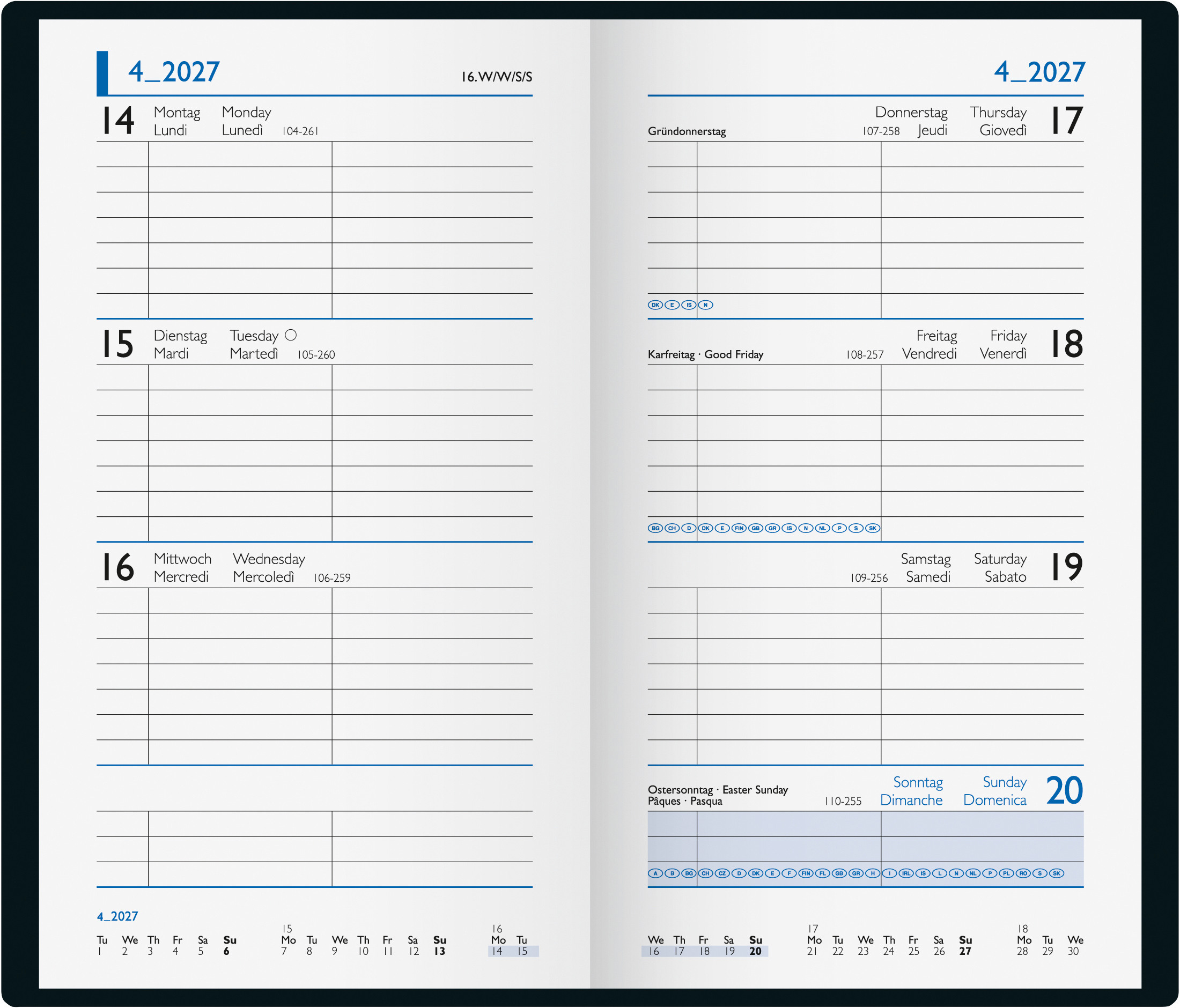 BIELLA Agenda Berlin 2027 851561050027U 6M/2P bleu ML 8.7x15.3cm