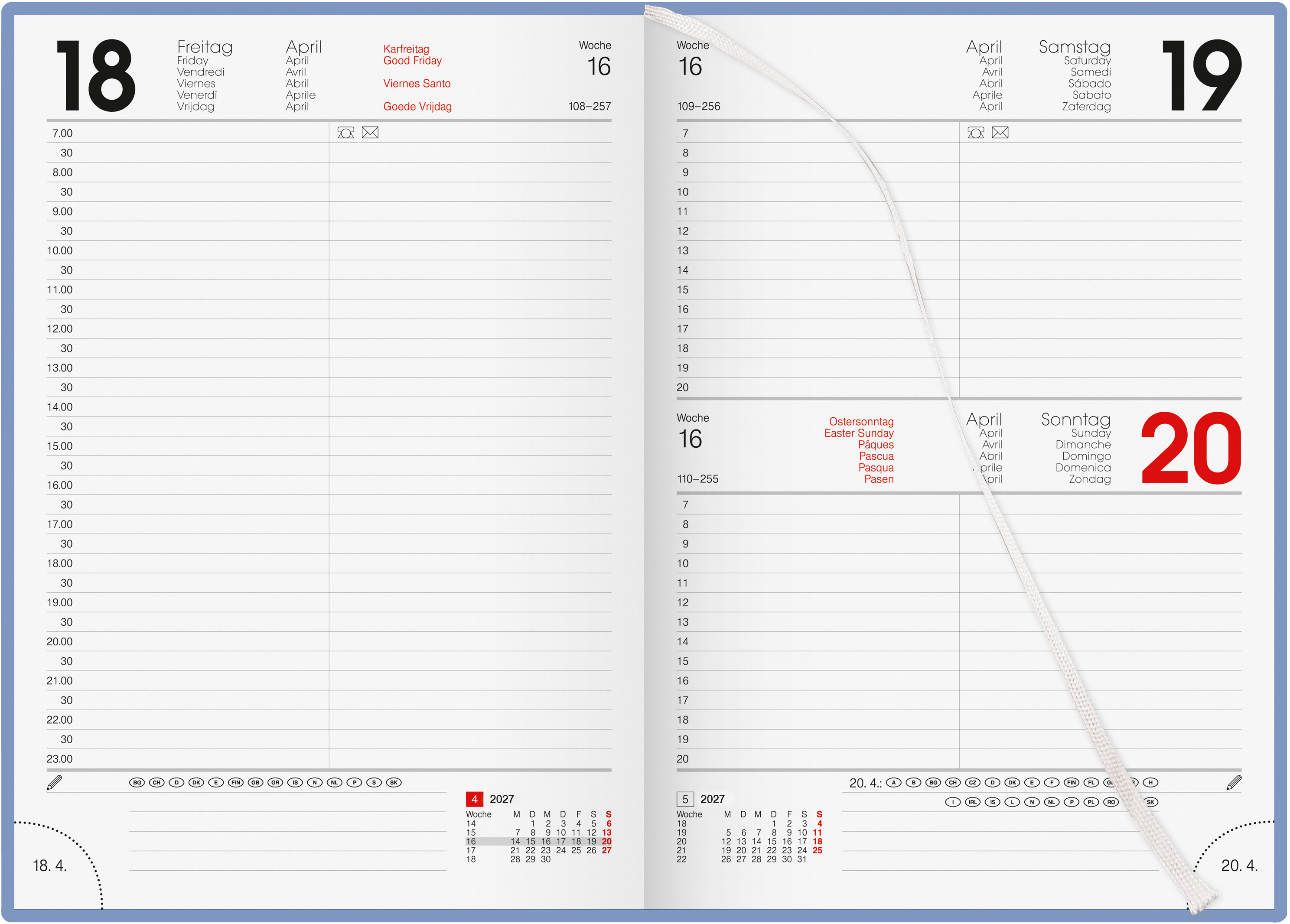 BIELLA Agenda Twist Wire-O 2027 803336050027U 1S/2P bleu ML 13.5x31.5cm