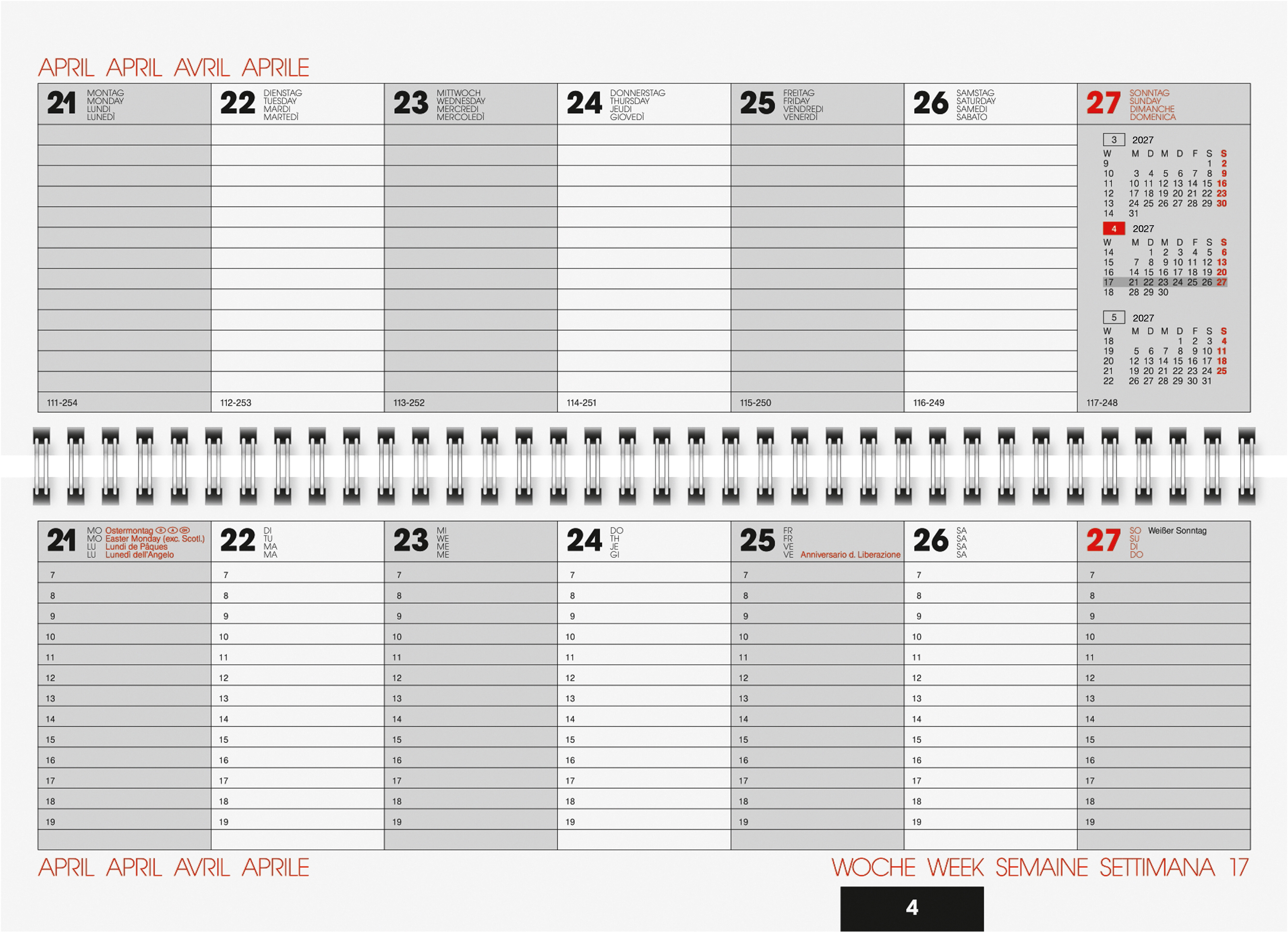BIELLA Calend.mural Longus WireO 2027 889019000027U 1M/1P Wire-O ML 12x54.4cm