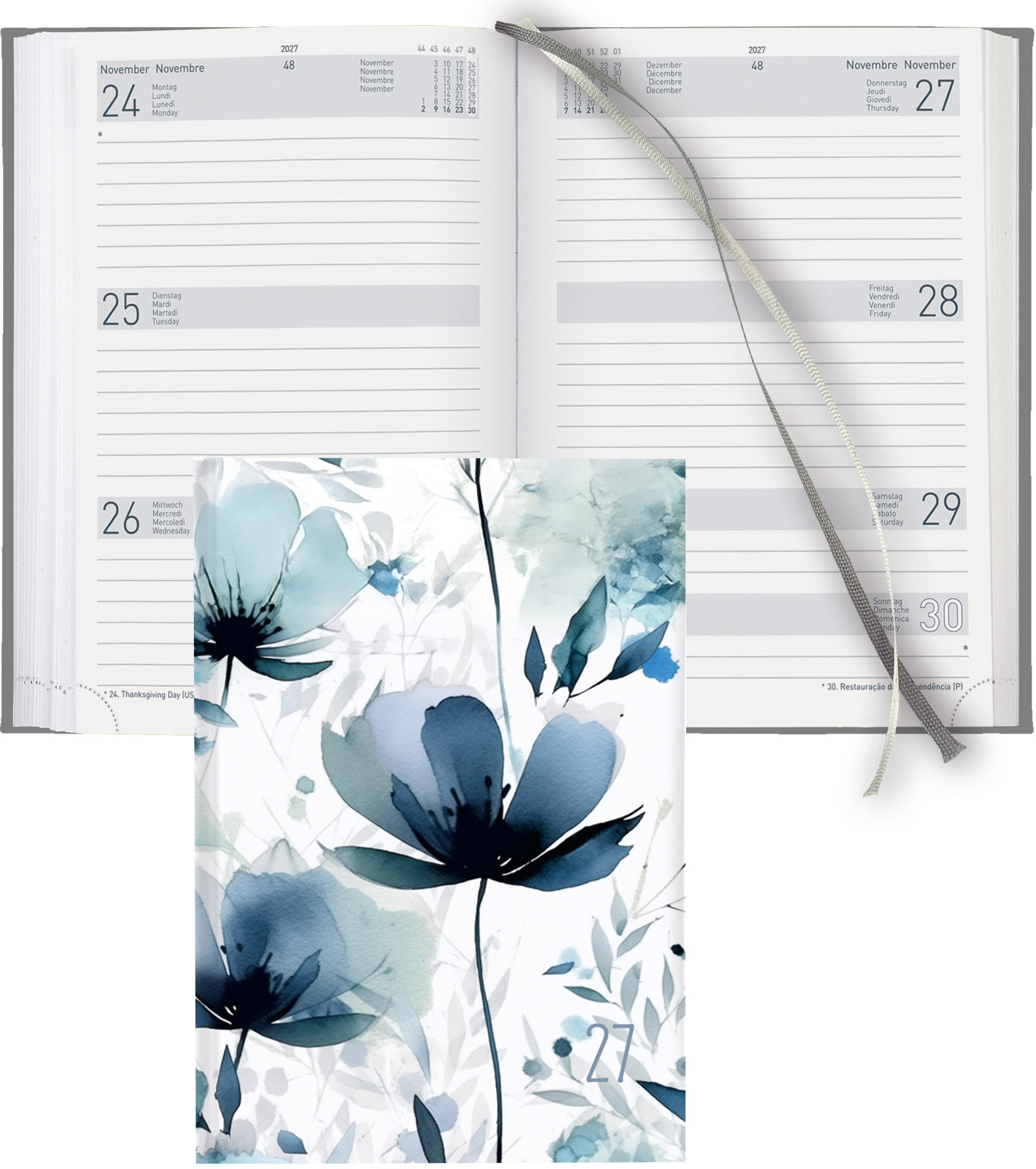 BIELLA Agenda Dispo Term 2027 808543750027U 1S/2P Blue Flower 14.5x20.5cm