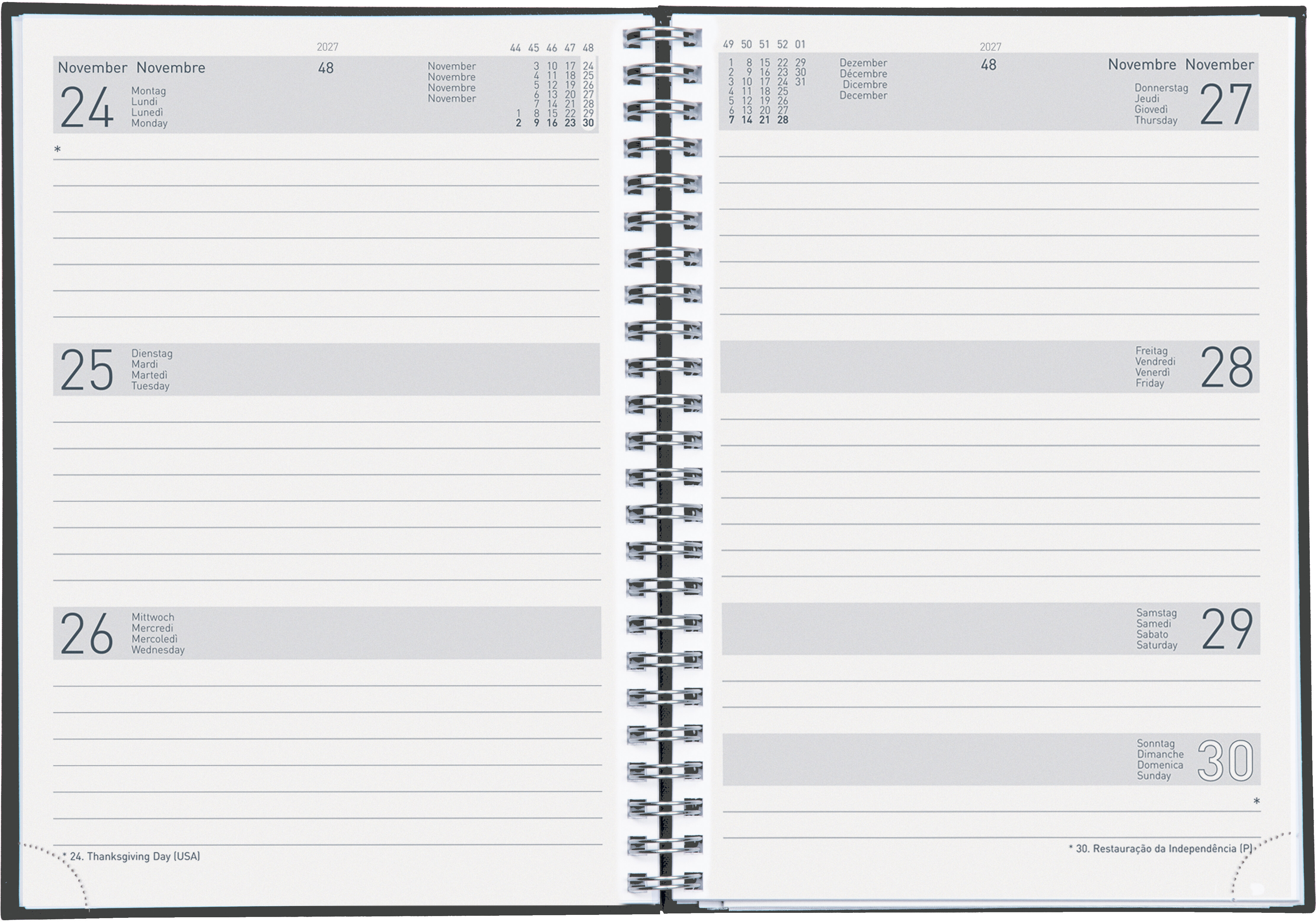 L'agenda professionnel Biella est idéal pour un usage quotidien, 1 semaine sur 2 pages vous offre un aperçu de la semaine professionnelle et la possibilité de planifier les rendez-vous du week-end en même temps.