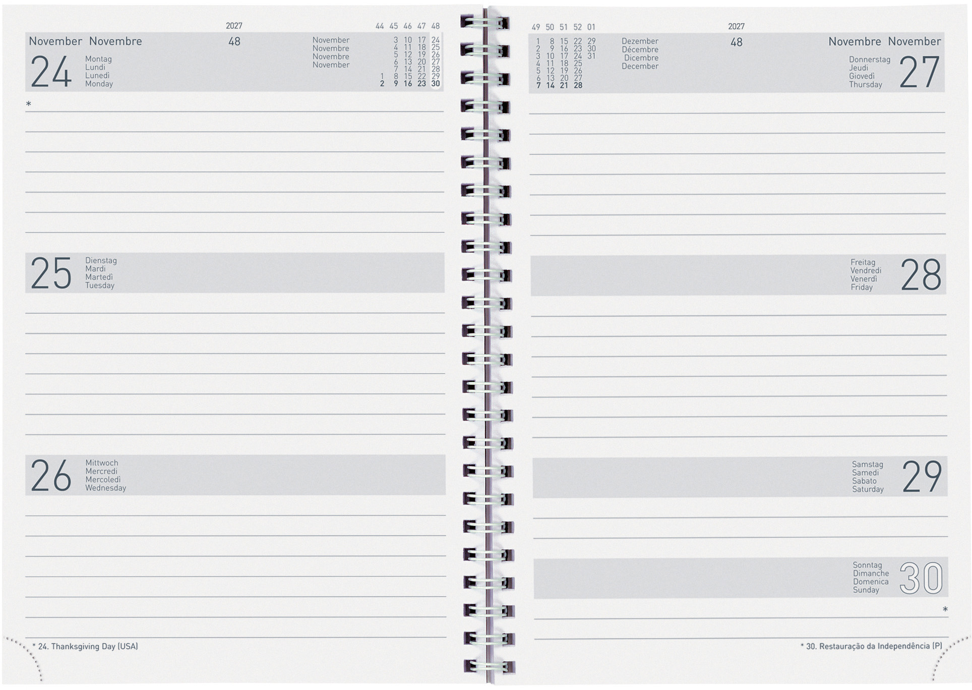 L'agenda professionnel BIELLA est idéal pour une utilisation quotidienne ; 1 semaine sur 2 pages vous offre un aperçu de la semaine professionnelle et la possibilité de planifier également les rendez-vous du week-end.