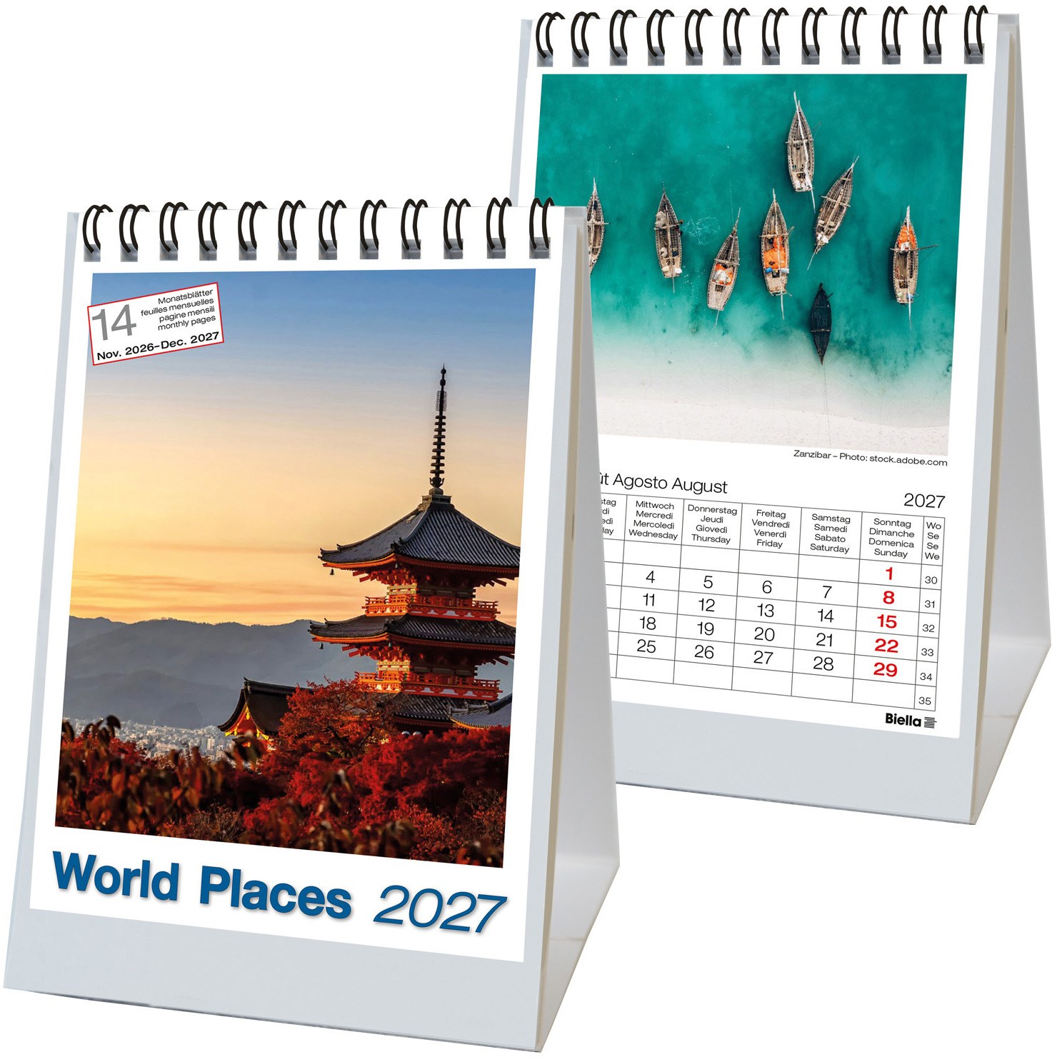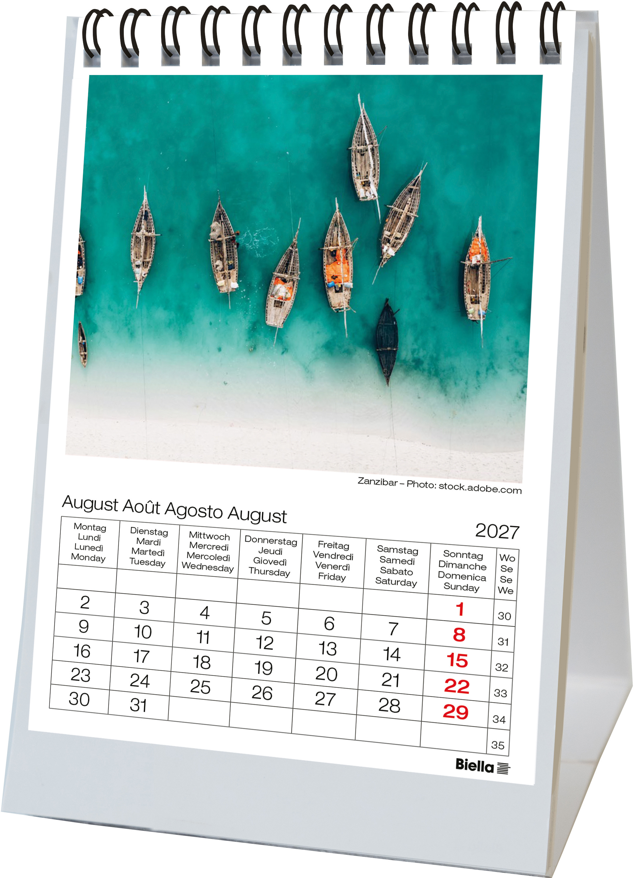 Le porte-photos Biella apporte de la couleur et de la variété dans votre planning mensuel. Chaque page contient, outre un calendrier, une image thématique différente par page.