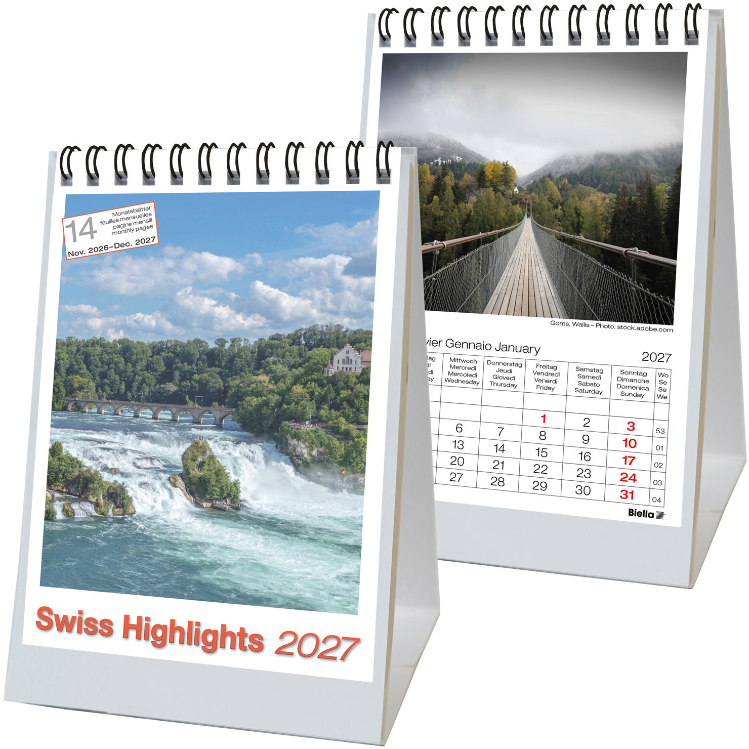 BIELLA Calendrier mural 2027 871407910027U 6M/1P rouge/blanc FR 21x29.7cm