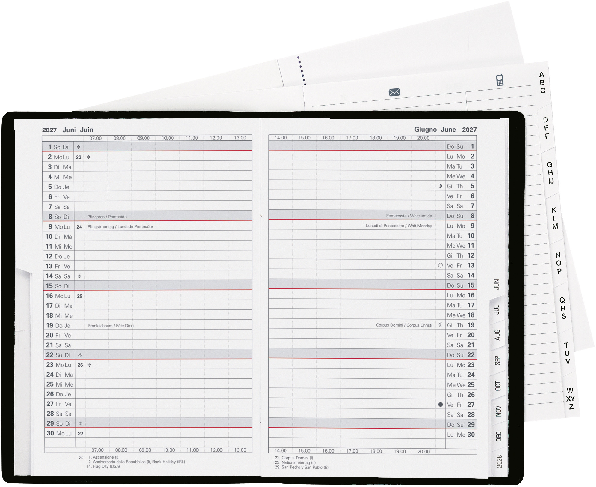 L'agenda Biella Istanbul convient aux utilisateurs qui ont besoin d'un espace généreux et contient un calendrier 1 mois sur deux pages. Comme d'habitude, l'agenda contient également un registre d'adresses et du papier pour prendre des notes.