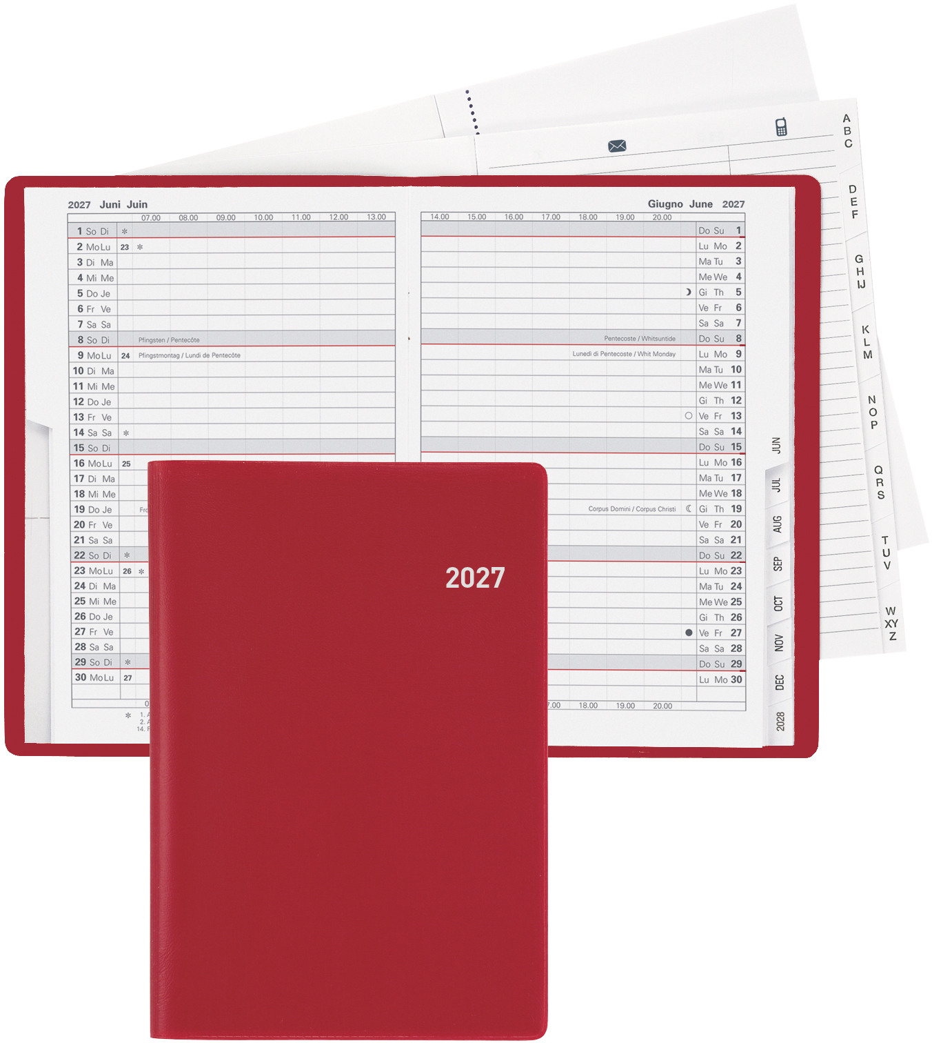 L'agenda Biella Istanbul convient aux utilisateurs qui ont besoin d'un espace généreux et contient un calendrier 1 mois sur deux pages. Comme d'habitude, l'agenda contient également un registre d'adresses et du papier pour prendre des notes.