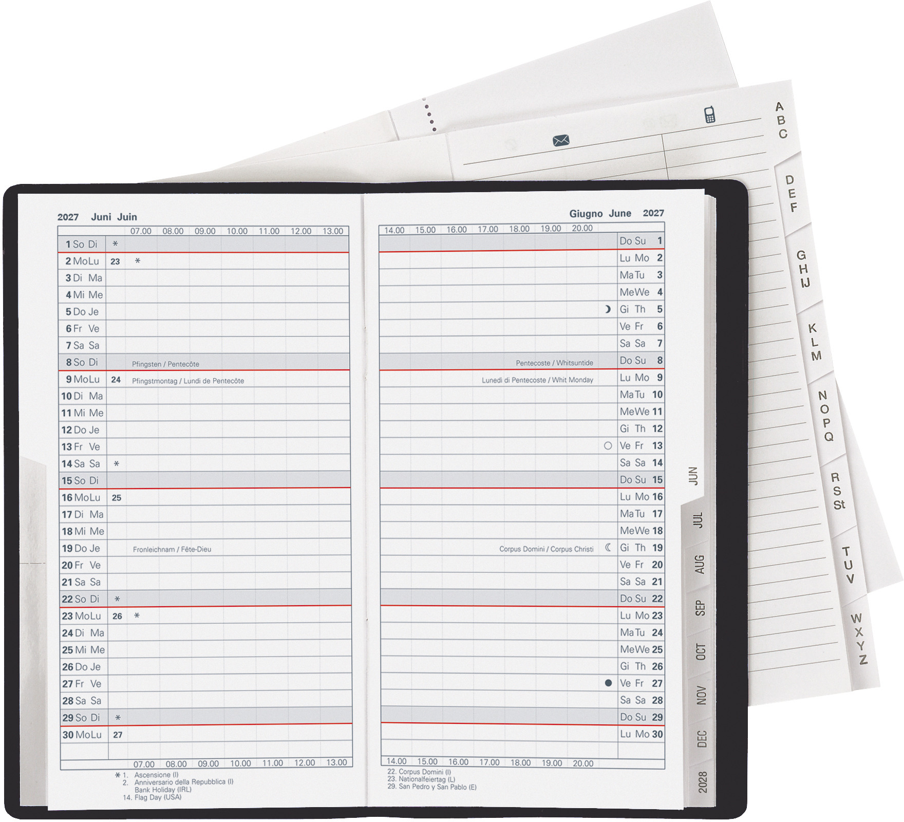 L'agenda Biella Lucerne se range idéalement dans chaque poche de chemise ou sac à main. Ce classique très apprécié, avec son calendrier 1 mois sur deux pages, contient comme d'habitude en plus un répertoire d'adresses et du papier pour prendre des notes.