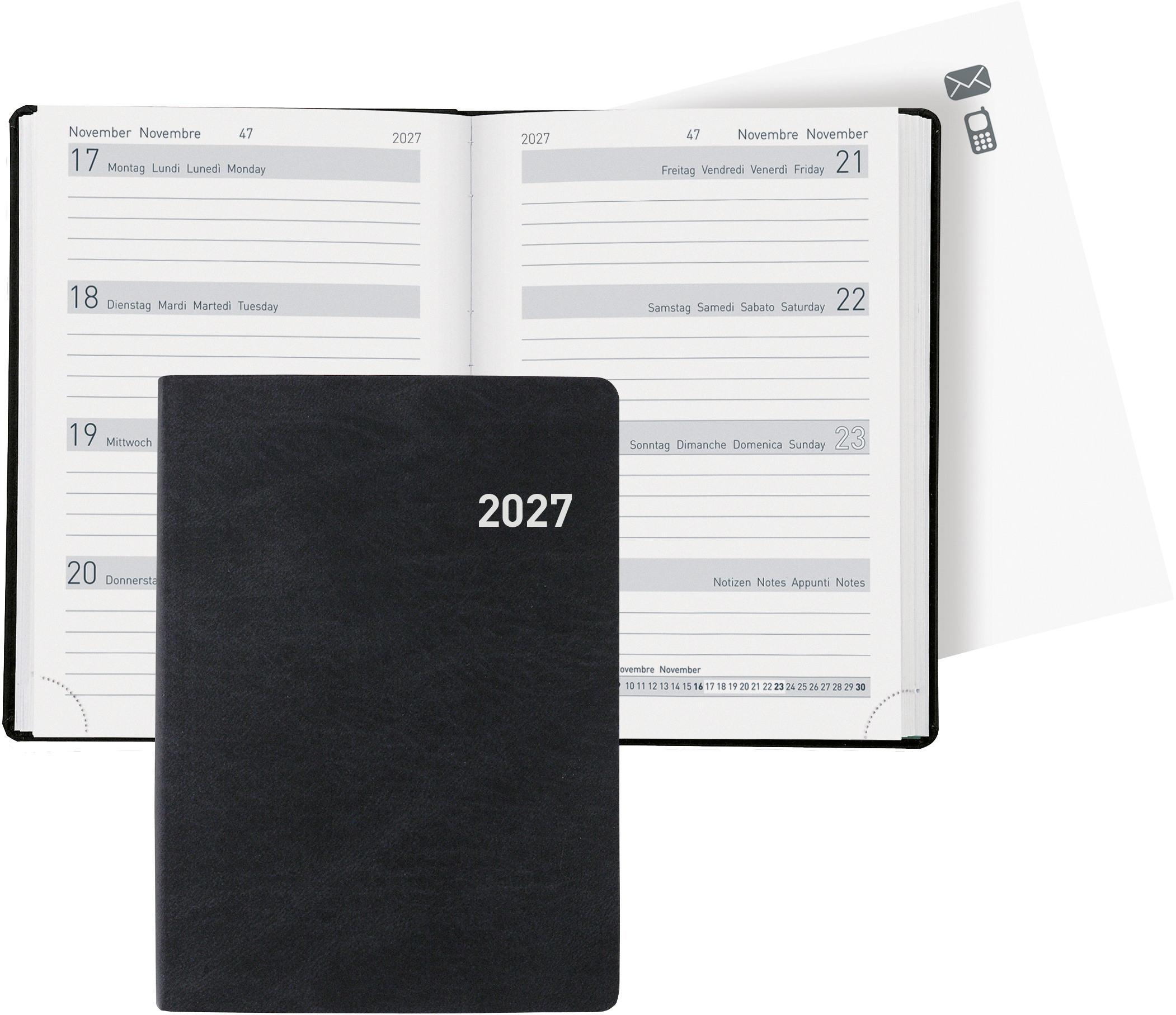 BIELLA Agenda Terminia 2027 806536020027U 1S/2P noir ML 14.5x20.5cm