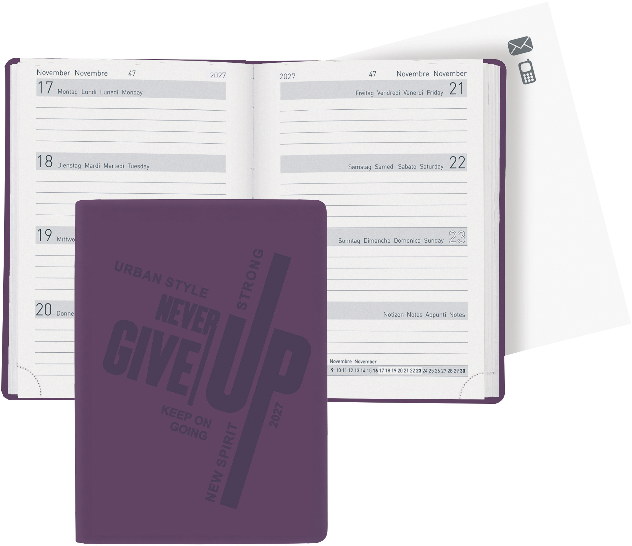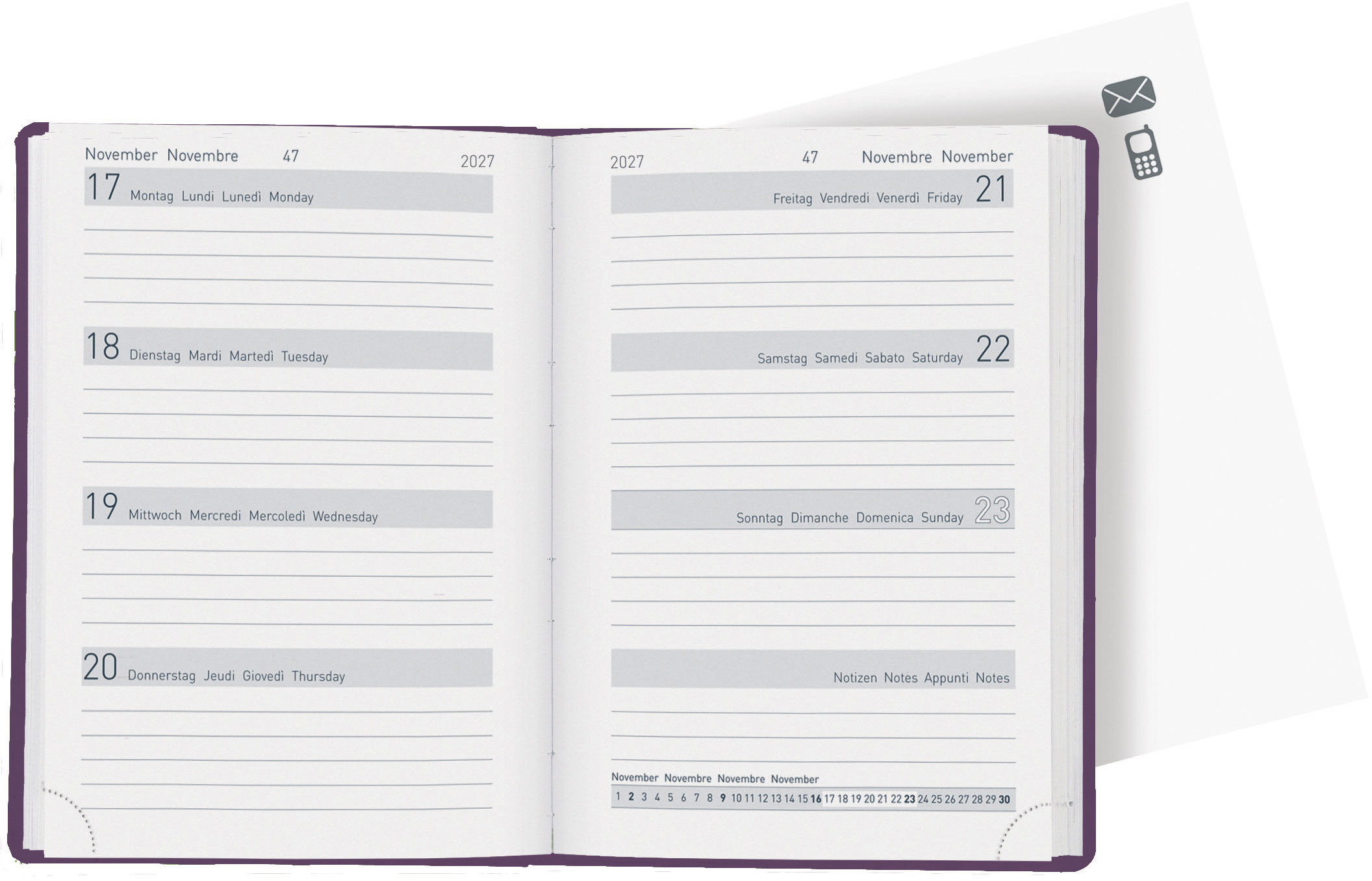 L'agenda de poche Biella est parfaitement adapté à un usage privé. Notre agenda de poche avec 1 semaine par page est pratique, se glisse dans une poche et vous donne un aperçu de vos rendez-vous hebdomadaires.