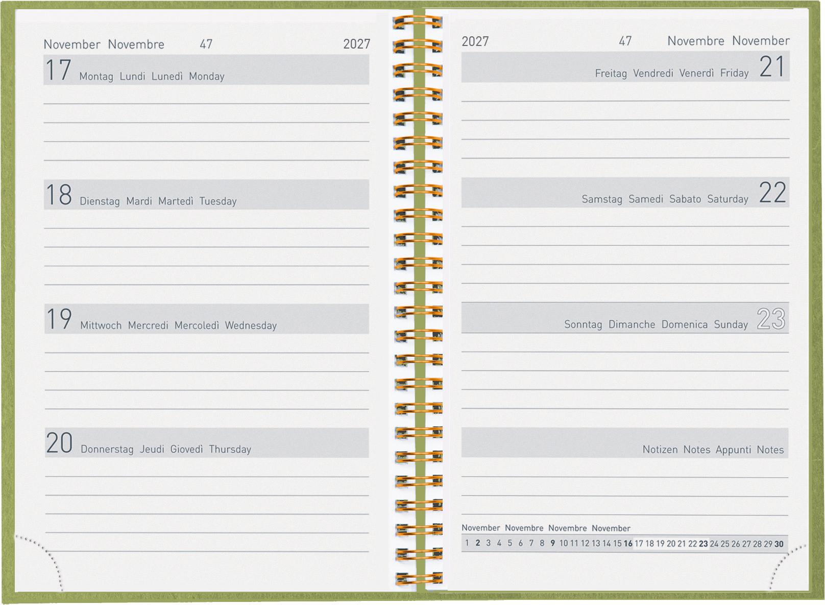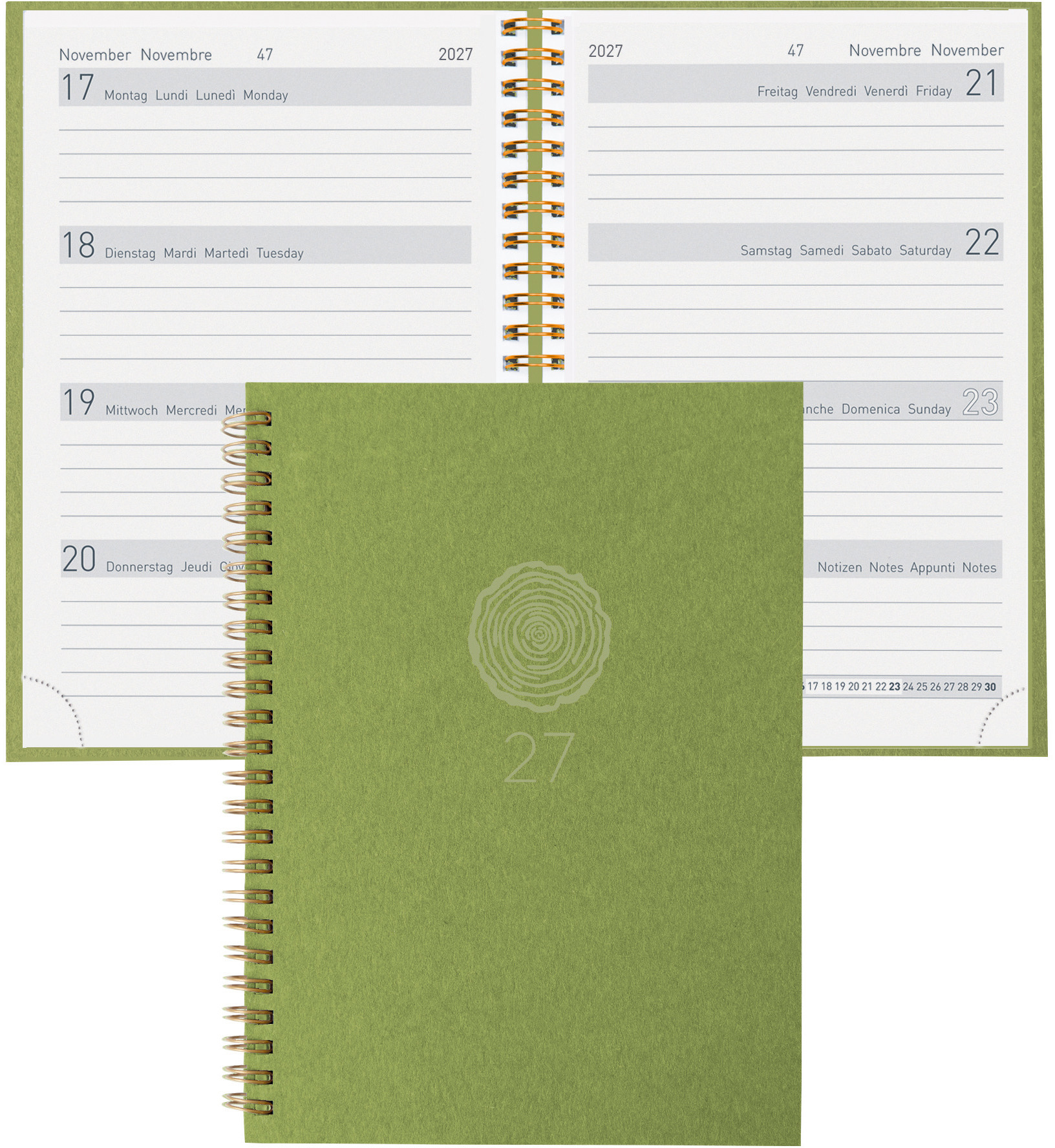 BIELLA Agenda Dispo Term 2027 808592310027U 1S/2P vertclair 14.5x20.5cm