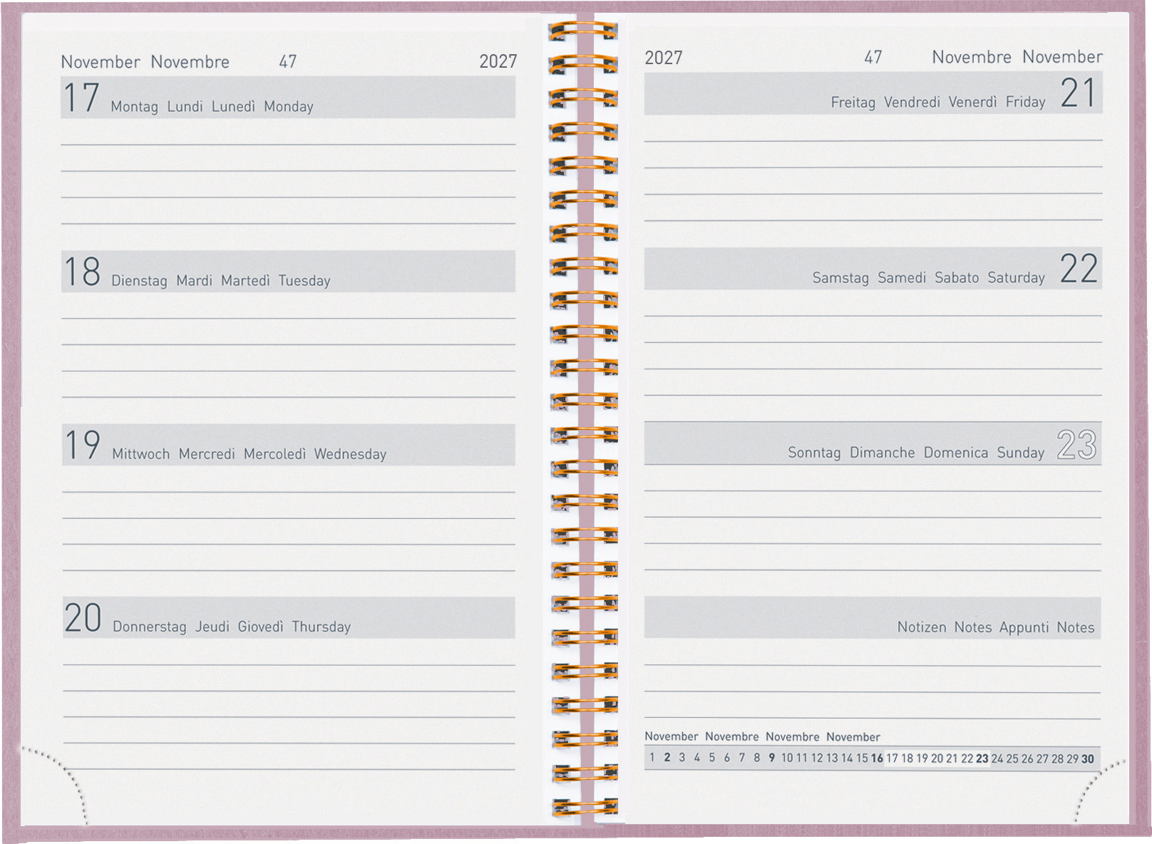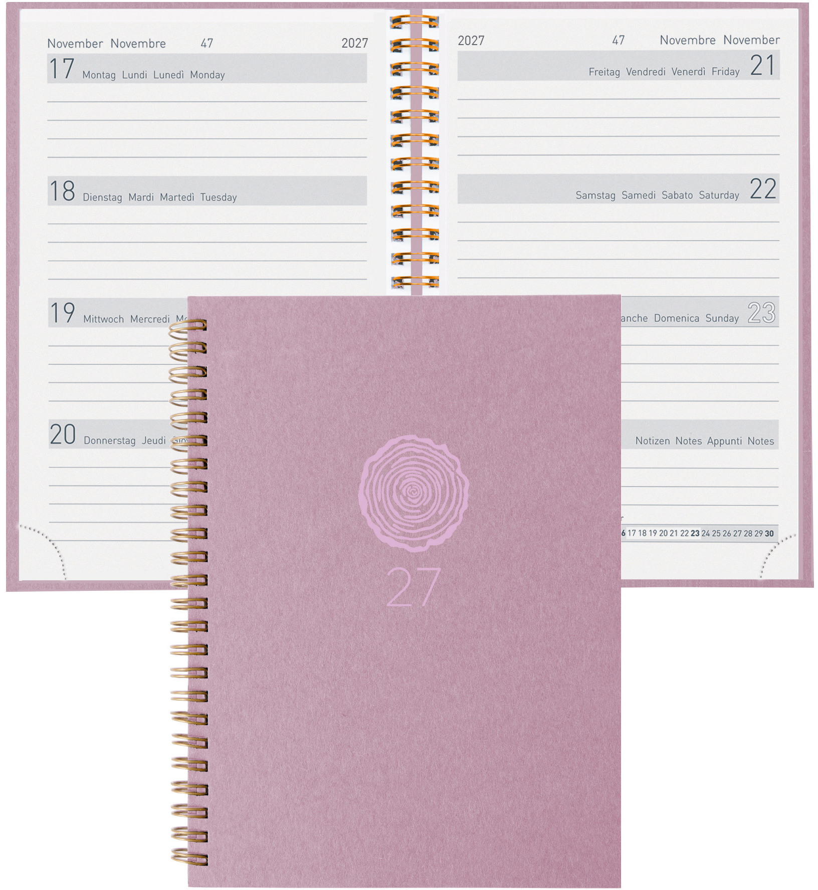 Die Taschenagenda Memento Natural Wire-O ist eine praktische und umweltfreundliche Planungsoption für das Jahr 2027. Mit einem kompakten Format von 10,1 x 14,2 cm bietet sie ausreichend Platz für die wöchentliche Planung auf zwei Seiten. Der Einband besteht aus Recyling-Pappe, was die Agenda zu einer nachhaltigen Wahl macht. Das viersprachige Kalendarium in Deutsch, Französisch, Italienisch und Englisch ermöglicht eine vielseitige Nutzung