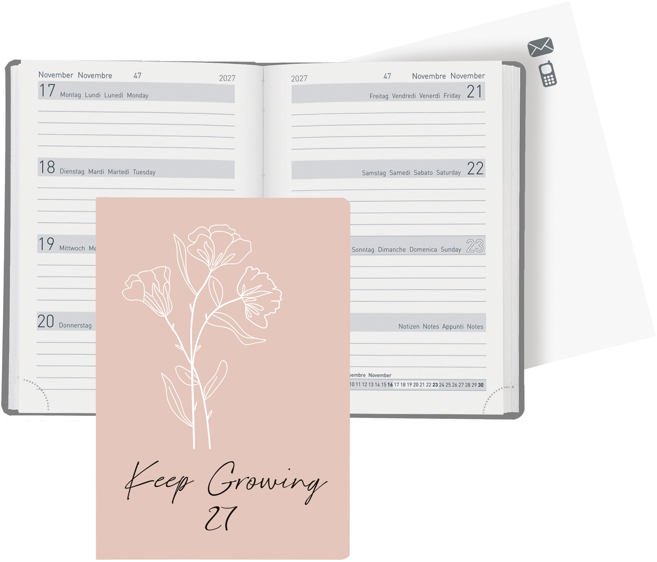 L'agenda de poche Biella est parfaitement adapté à un usage privé. Notre agenda de poche avec 1 semaine par page est pratique, se glisse dans une poche et vous donne un aperçu de vos rendez-vous hebdomadaires.