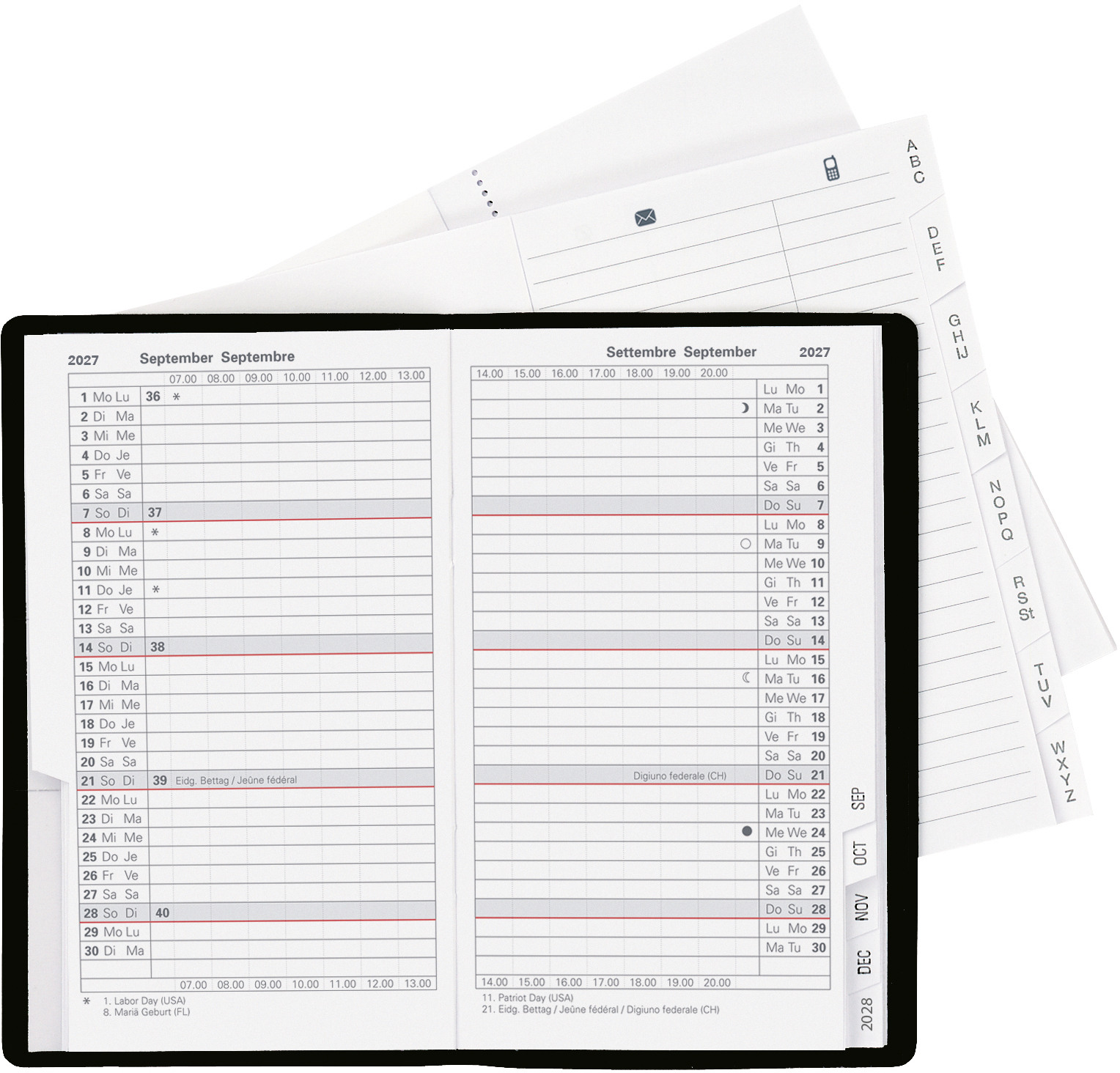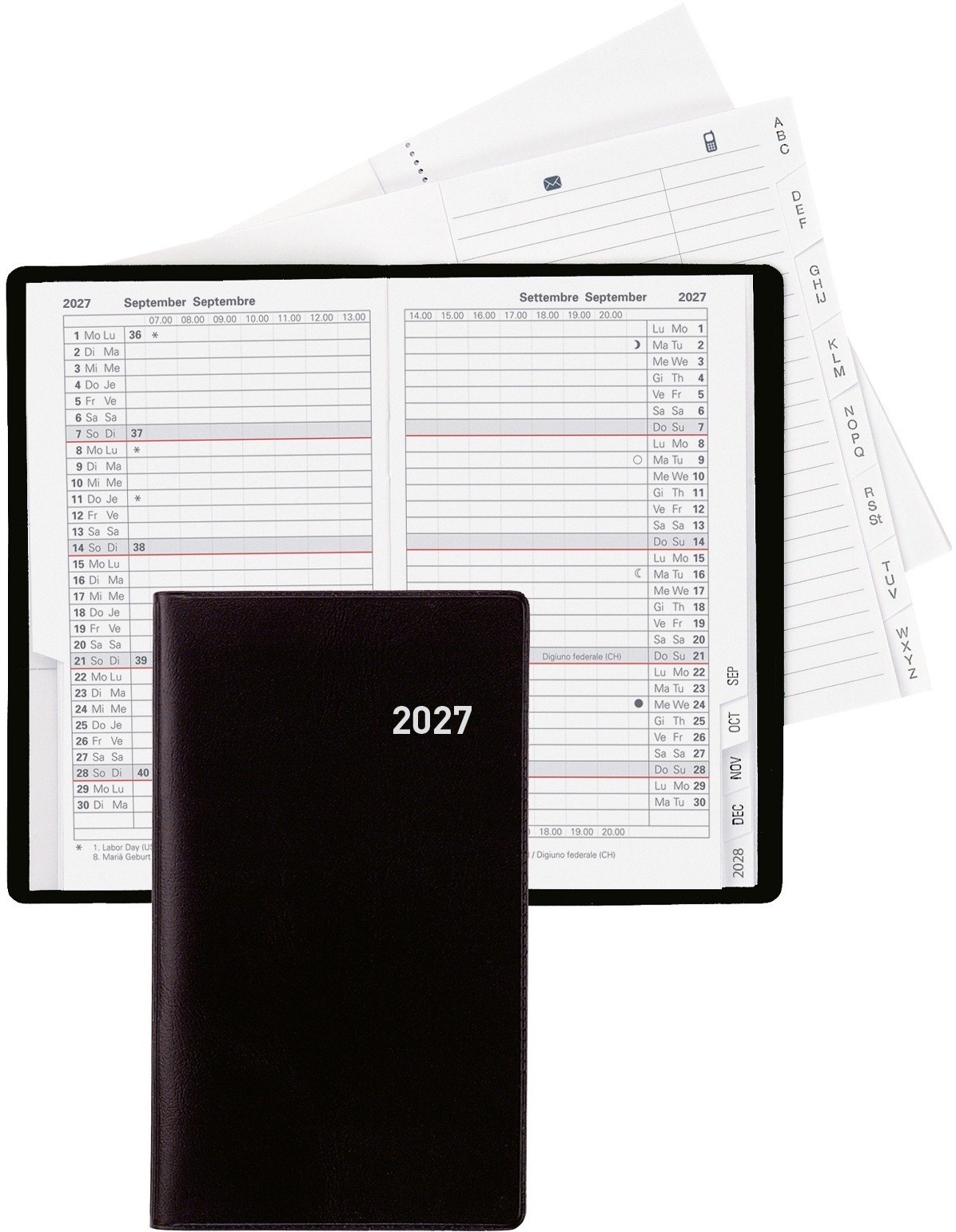 BIELLA Agenda Mittelform. 2027 822301450027U 1S/2P rouge ML 7.6x11cm