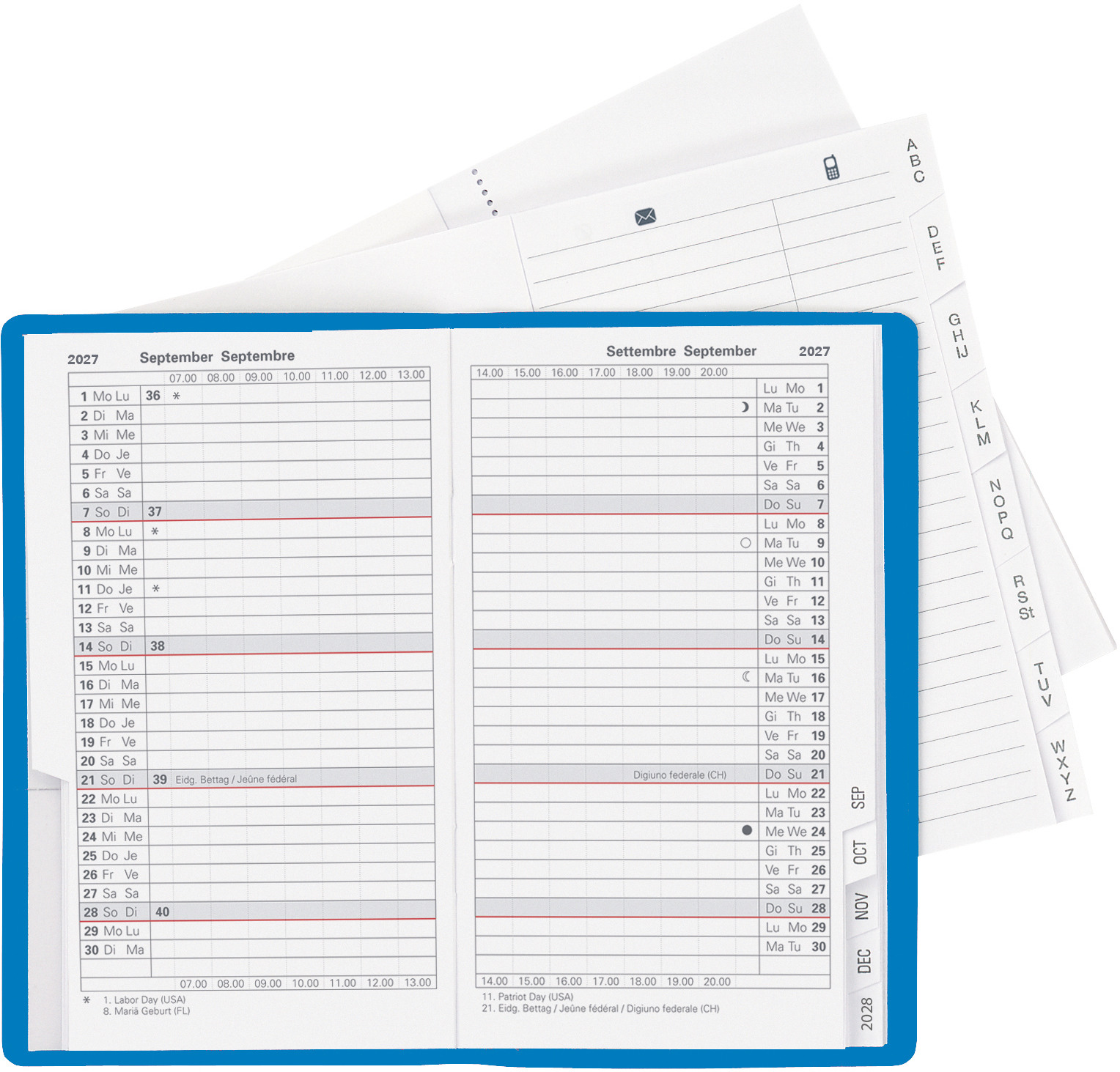 L'agenda Paris de Biella est idéal pour les planificateurs économes qui souhaitent n'avoir que les entrées les plus importantes dans l'aperçu mensuel. L'agenda Paris est le plus petit format d'agenda et contient, outre le calendrier, 1 mois par page no