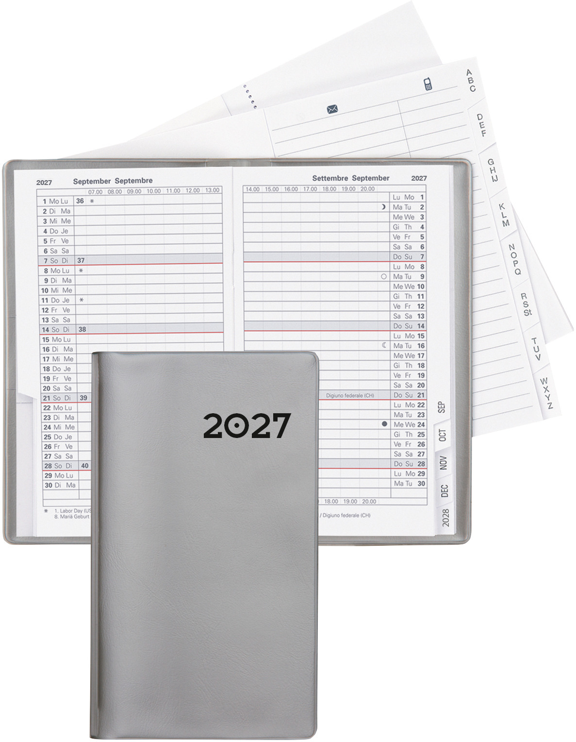 BIELLA Agenda Dispo Term 2027 808592250027U 1S/2P gris clair 14.5x20.5cm