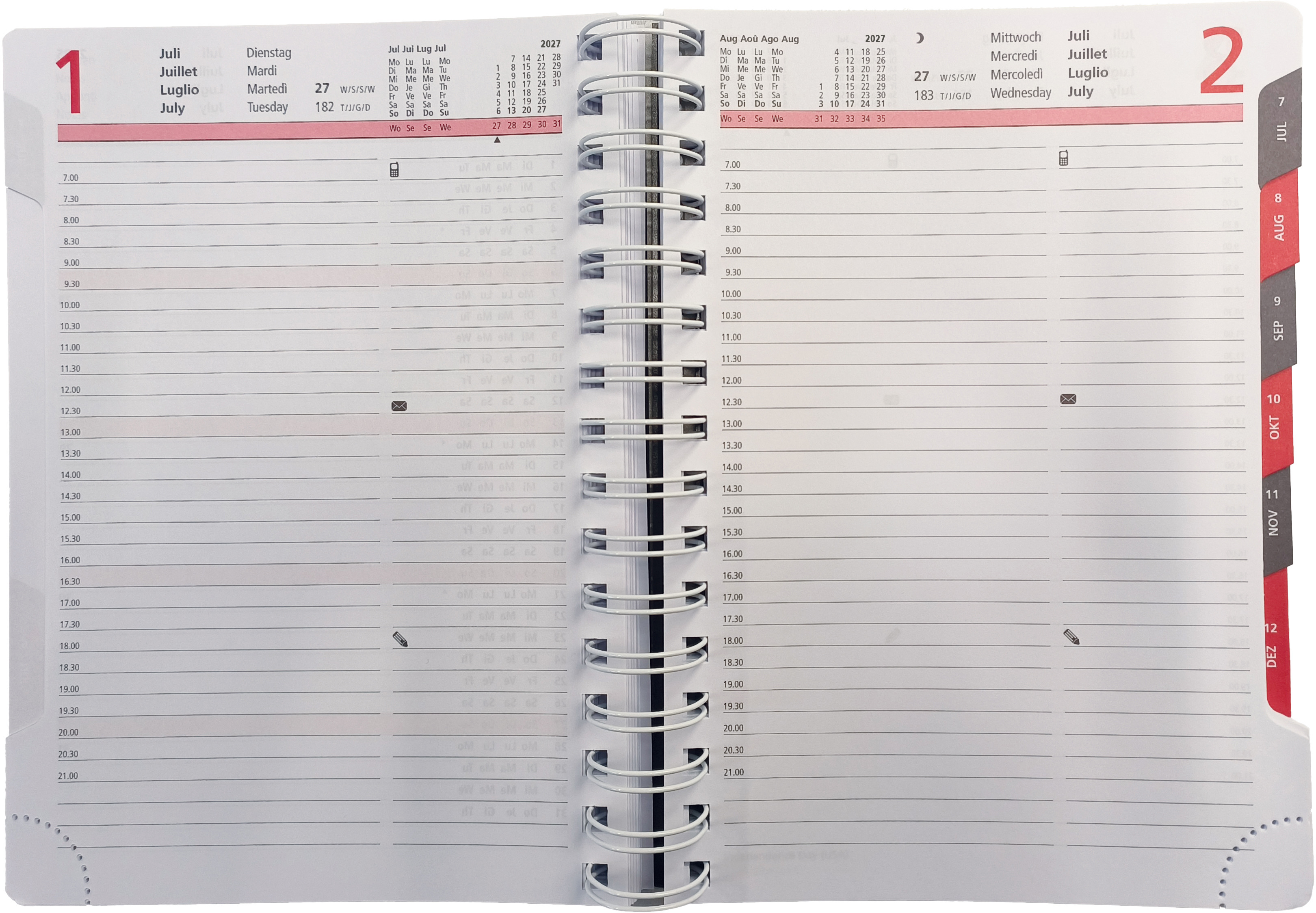 L'agenda professionnel BIELLA est idéal pour une utilisation quotidienne. L'agenda professionnel avec 1 jour par page vous garantit beaucoup de place pour la planification, la possibilité de prendre des notes et des rappels, ainsi qu'une excellente organisation grâce à la division en heures.