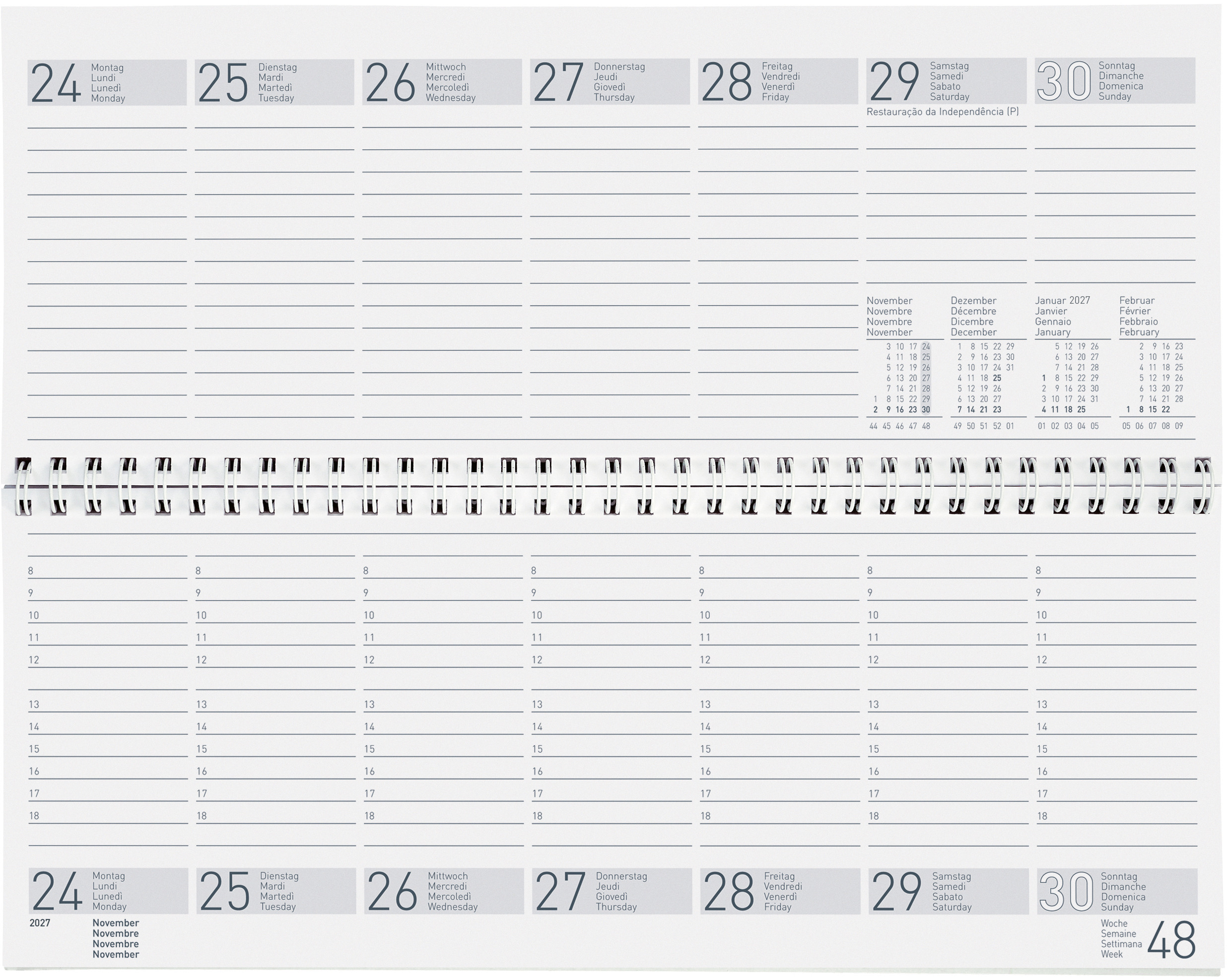 BIELLA Calend.mural Block Nr.11 2027 889011000027U 1M/1P Wire-O ML 21x29.7cm