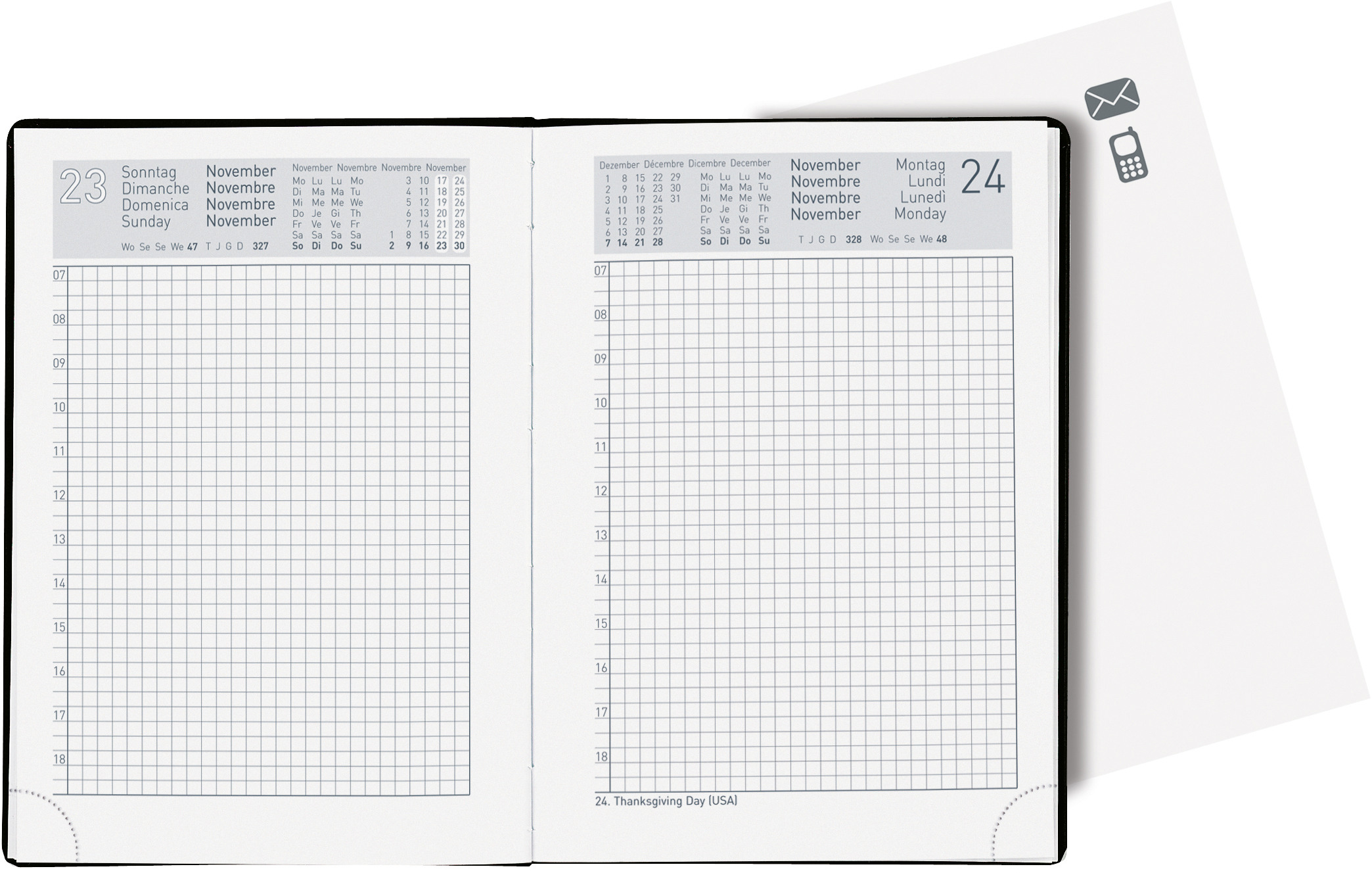L'agenda de poche Biella est parfaitement adapté à un usage privé. Notre agenda de poche avec 1 jour par page est pratique, se glisse dans une poche et vous offre une précision dans votre planification grâce à la division des heures.